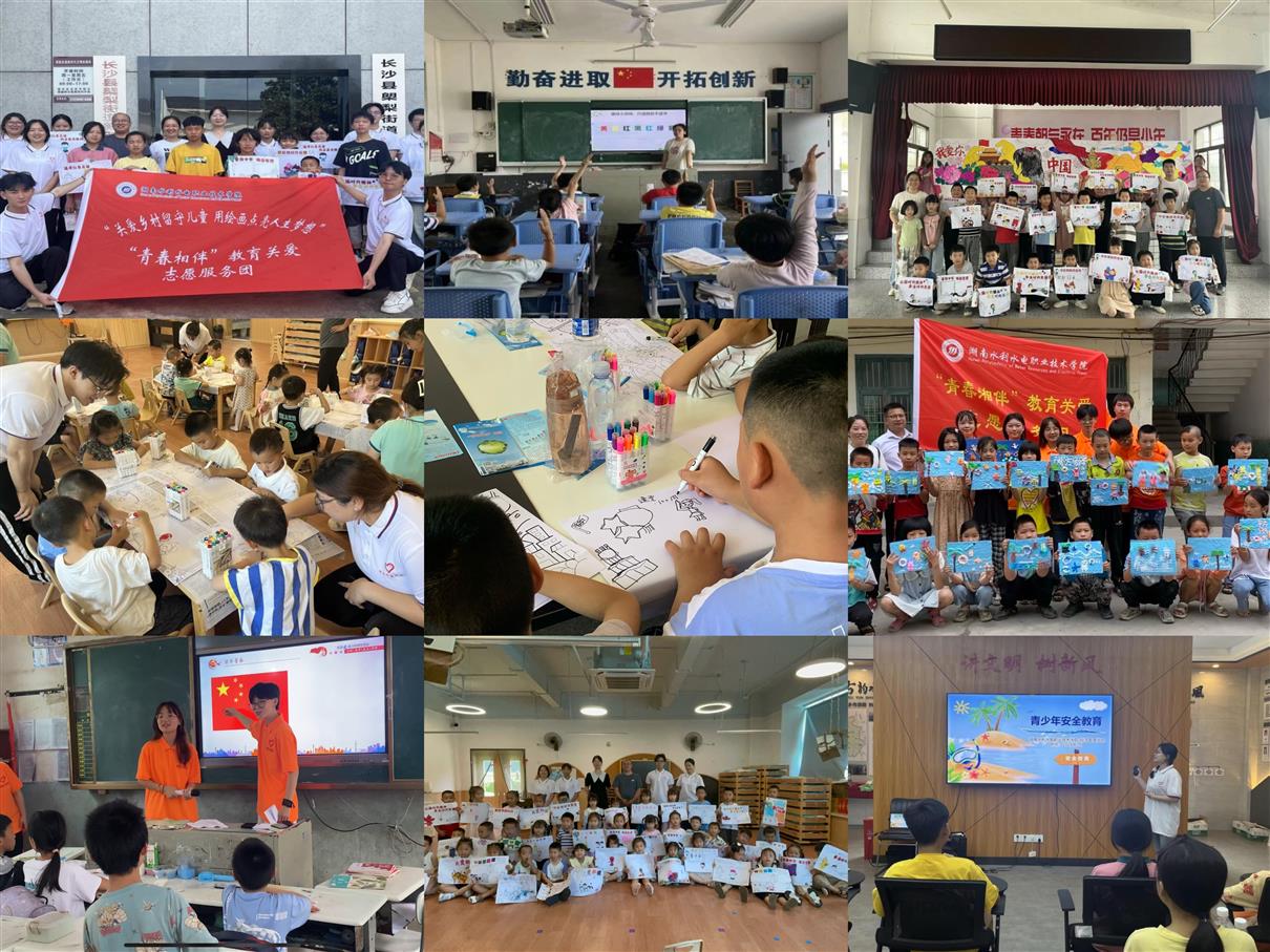 作为学校实践育人的品牌项目,该项目由经济管理学院团总支发起,以“通过艺术教育培育时代新人”为核心理念,聚焦乡村留守儿童的心理健康与综合素质提升。2024年暑期,“青春相伴”志愿服务团深入长沙县高峰社区、红树坡社区、泉旭社区及浏阳市龙伏镇黄桥完全小学,开展为期两个月的“绘画点亮梦想”主题实践活动,通过创意绘画教学、红色理论宣讲等形式,引导农村儿童在艺术创作中陶冶情操、启迪智慧,累计服务留守儿童300余人次,用实际行动践行“以美育人、以文化人”的教育使命,向新中国成立75周年献礼。