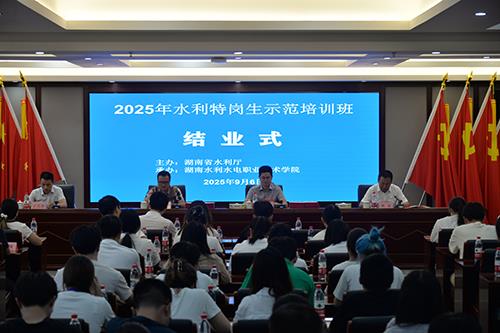 9月6日上午,2025年水利特岗生示范培训班结业仪式在我校举行。本次结业仪式不仅标志着为期七天的培训圆满结束,更是对全体学员学习成果的肯定与表彰。学校党委委员、副校长蒋买勇,湖南省水利厅人事处副处长谢续华出席,学校水利工程学院院长主持结业仪式。