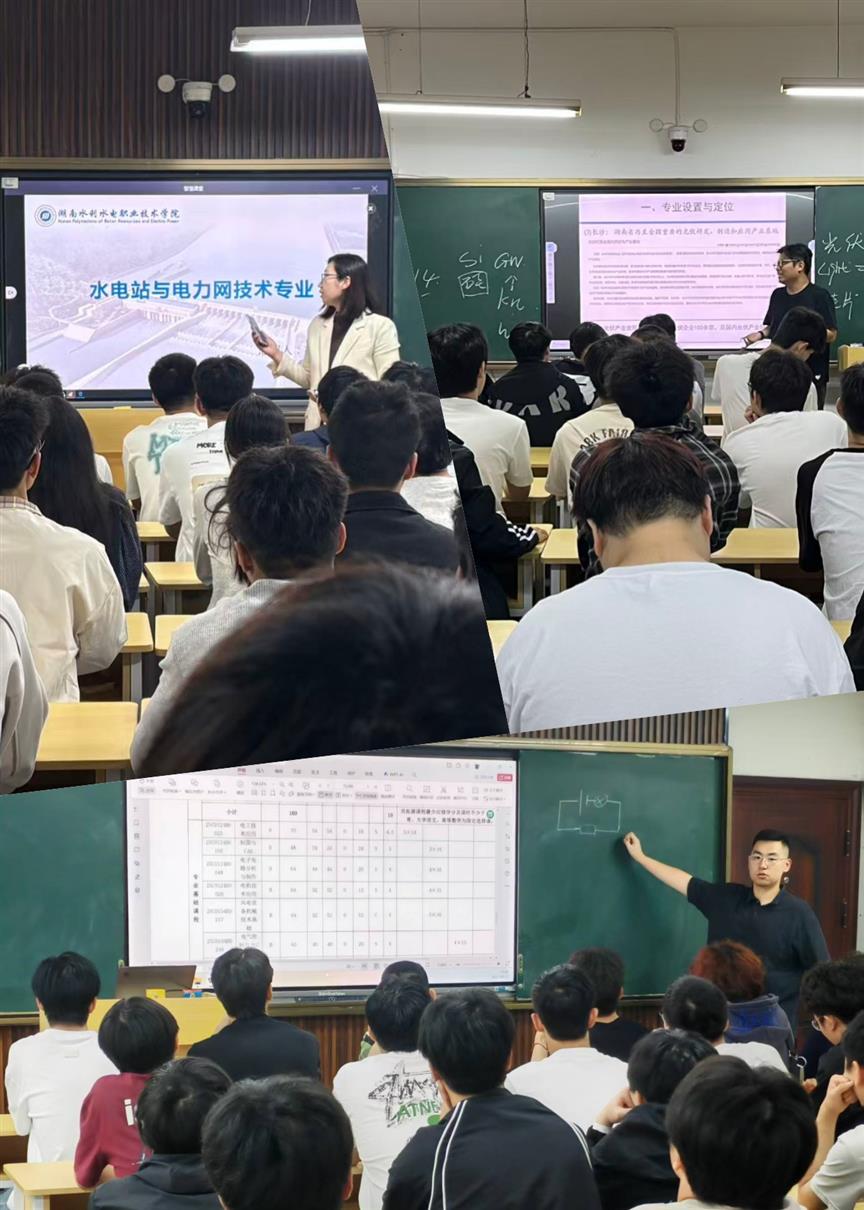 供电、机电、水电站、风电、光伏五大专业联合见面会顺利举行。党总支书记鼓励新生在学院“能量满满的大家庭”中找准定位;学院院长则结合新能源产业机遇,阐述学院在五大专业领域的教学资源优势。专业介绍环节,各专业带头人分场地进行专业解读:供用电技术专业带头人解析了专业在智能电网建设中的作用与就业方向;机电一体化技术专业带头人结合工业自动化趋势,详细讲解了核心课程设置与技能培养重点;水电站及电力网专业带头人以案例引入对专业在能源供应体系中的地位进行了分析讲解;光伏、风电专业带头人深入解读技术原理与行业人才需求,全方位为新生解码专业内涵。