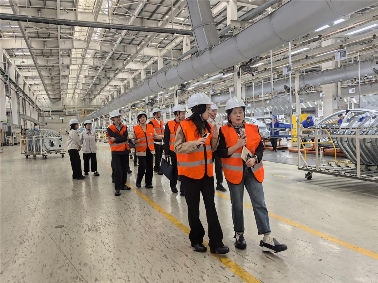 在比亚迪人力资源处招聘经理罗雪等人的陪同下,随行人员首先参观了比亚迪的现代化展厅、先进的焊装工厂和高效的总装工厂。从前沿的新能源技术成果到高度自动化的生产线,随行人员深刻感受到了比亚迪作为全球新能源领军企业的创新实力与“中国智造”的速度。大家边走边看,边听边问,重点了解了企业的生产流程、技术革新以及对高技能人才的知识、能力和素质要求。