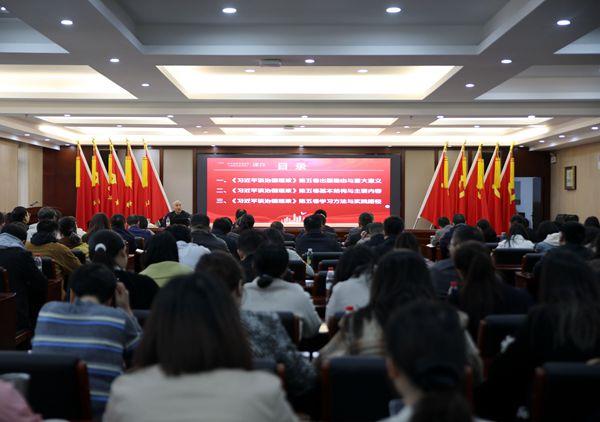 学校邀请了中共湖南省委党校(湖南行政学院)教授张建民作《习近平谈治国理政》第五卷专题学习辅导。张建民教授从《习近平谈治国理政》第五卷出版缘由与重大意义、基本结构与主要内容、学习方法与实践路径三个维度展开解读,系统阐释了这部集中展现马克思主义中国化时代化最新成果的重要著作的精髓。