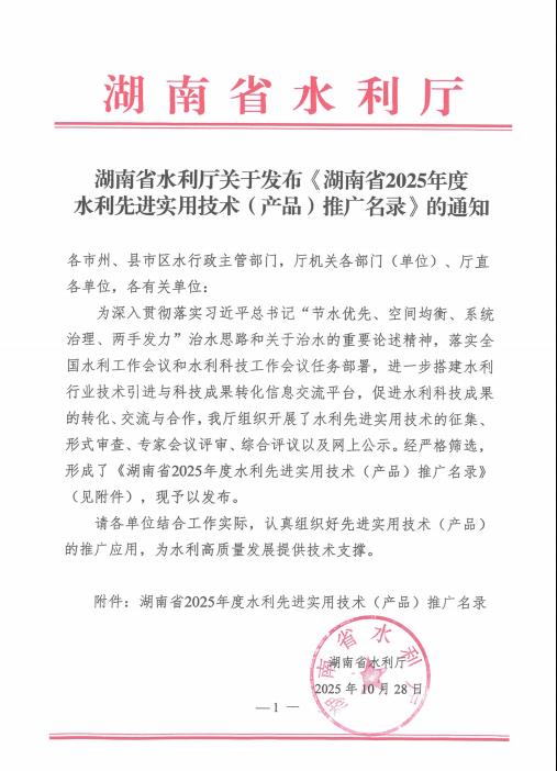近日,湖南省水利厅公布了《湖南省2025年度水利先进实用技术(产品)推广名录》(以下简称《名录》),共包含60项技术(产品)。我校依托湖南省水利科技重大项目、校企合作重大科技攻关项目牵头研发的“土石堤坝渗漏巡检集成平台”和“水工隧洞一体化智能巡检机器人”两项技术(产品)成功入选。