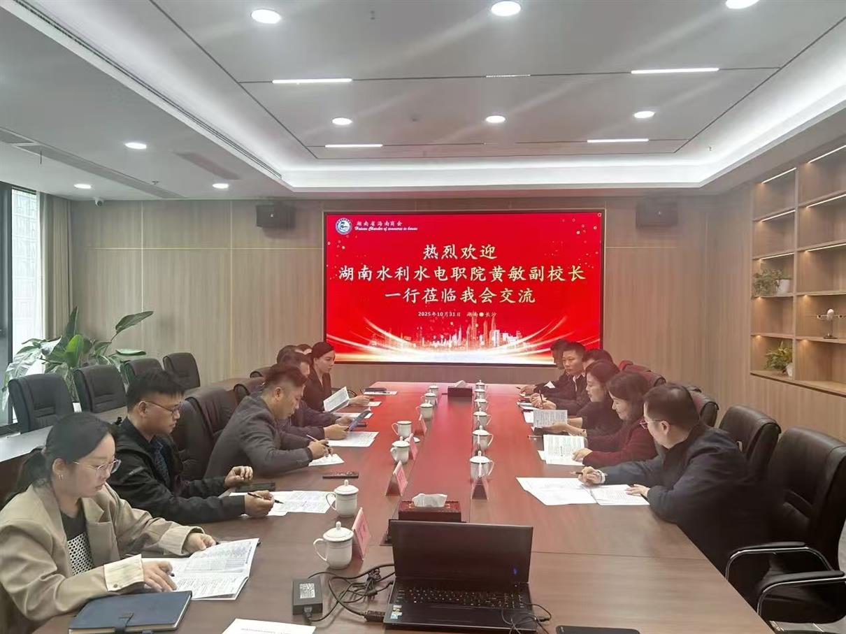 为精准对接产业人才需求、深化产教融合机制,助力我校毕业生实现更高质量就业,10月31日,学校副校长黄敏率队前往湖南省海南商会开展交流座谈。商会会长王首锋、执行会长江华军、秘书长萧超文及多家会员企业负责人参加交流。