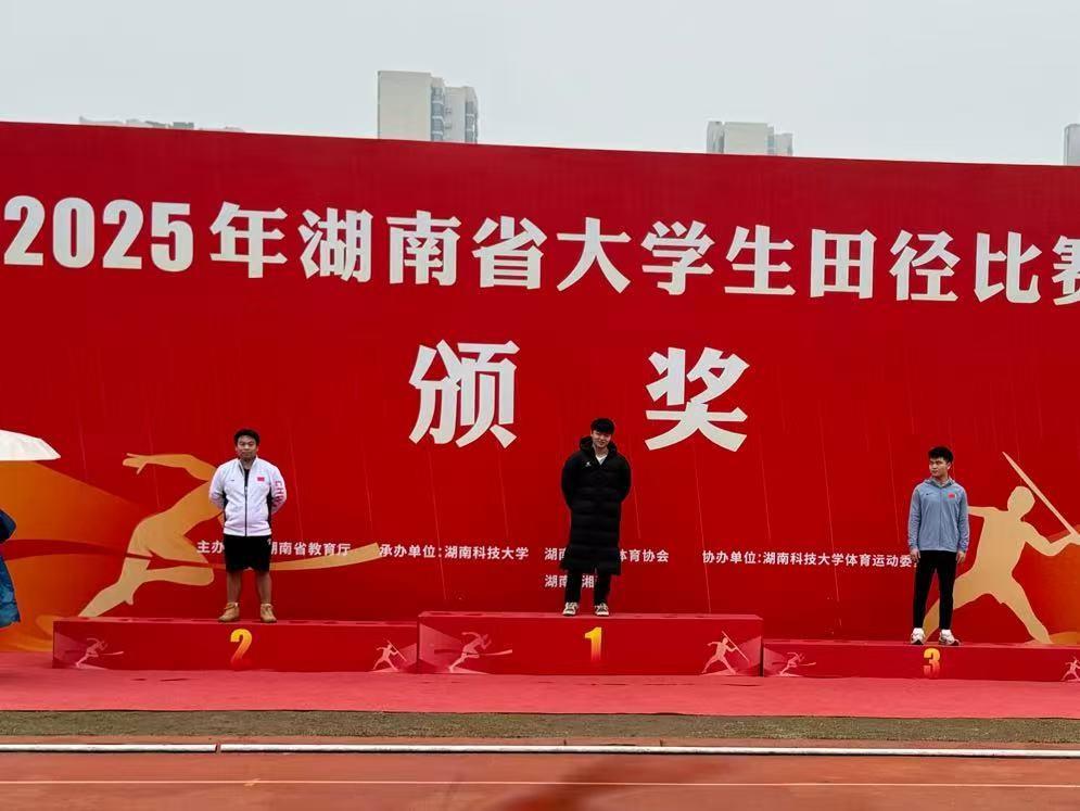 近日,2025年湖南省大学生田径比赛在湖南科技大学圆满收官。此次赛事云集了全省各高校的田径精英,竞争异常激烈,经过多轮激烈角逐,我校田径代表队最终收获硕果。在男子标枪项目中,易湘阳强势登顶,斩获金牌,易翔获得标枪阳光组第三;刘银泺在女子5000米、10000米长跑中双线告捷,摘得两枚银牌;马艺航在男子铁饼项目中喜获铜牌;李显涵获得男子三级跳第四名,跳远第八名;李炀在男子铅球项目中获得第七名;姚天赋在男子400米项目中获得第五、男子200米项目中获得第七。在男子4×100米接力赛中,队员们默契配合,拿下全省第五名的成绩。