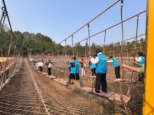参观过后,团队前往盘龙生态农业产业园开展素质拓展训练。“破冰行动”“重走长征路”等团队协作项目,让同学们在互动中深化信任、凝聚共识。大家在模拟情境中学习有效沟通,在合作挑战中锻炼问题解决能力,生动展现出水利学子团结进取、敢拼能赢的精神风貌,切实提升了队伍的凝聚力与协同效能。