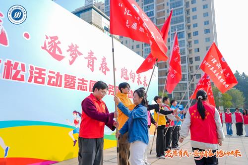 冬日暖阳洒满楚润广场,青春朝气激荡校园赛场。12月9日下午2:30,学校“志愿有我・逐梦青春・跑向未来”校园马拉松爱心捐赠活动暨志愿服务月启动仪式,在学校西门楚润广场正式拉开帷幕。校长王玉成、副校长黄敏,学工部、基础课部、各二级学院相关负责人及300余名志愿者学子齐聚现场,以“运动+公益”的创新形式,共同点燃这场兼具青春活力与公益温度的志愿服务盛事。