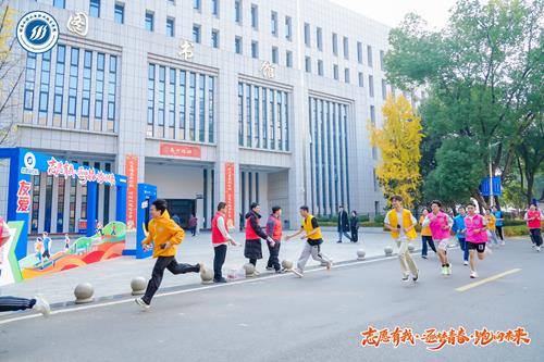 随着校长王玉成鸣枪发令,《中国青年志愿者之歌》的激昂旋律瞬间响起。志愿者们如离弦之箭冲出起点,沿着串联图书馆、教学楼、操场的校园闭环路线奋勇奔跑。赛道上,学子们步履矫健、笑容飞扬,用奔跑汇聚爱心,以脚步丈量担当。赛道旁,身着红色马甲的志愿者们有条不紊地递水补给,一句句“加油”温暖有力;护校队队员们坚守关键路段,目光专注地维护秩序、保障安全;途经的师生纷纷驻足瞩目,挥手呐喊助威,整个校园都沉浸在热血与温情交织的氛围中。