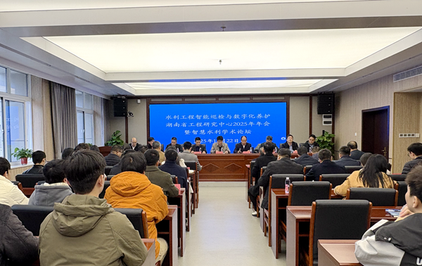 12月22日,水利工程智能巡检与数字化养护湖南省工程研究中心2025年年会暨智慧水利学术论坛在我校顺利举办。学校党委书记常世名、校长王玉成,相关部门及师生代表,湖南省港航水利集团有限公司、湖南省水利水电科学研究院、中交宏禹(湖南)水利工程有限公司等参建单位相关负责人,中南勘测设计研究院有限公司、中国水利水电第八工程局有限公司、湖南省水利发展投资有限公司、湖南省水利水电勘测设计规划研究总院有限公司、湖南金塘冲水利枢纽建设管理有限公司等行业骨干企业代表,长沙县发展和改革局、湖南省水土保持学会等政府机构与学术组织代表,以及武汉大学、长沙理工大学等高校专家学者齐聚一堂,共商水利工程智慧管养创新发展大计。开幕式由王玉成主持。