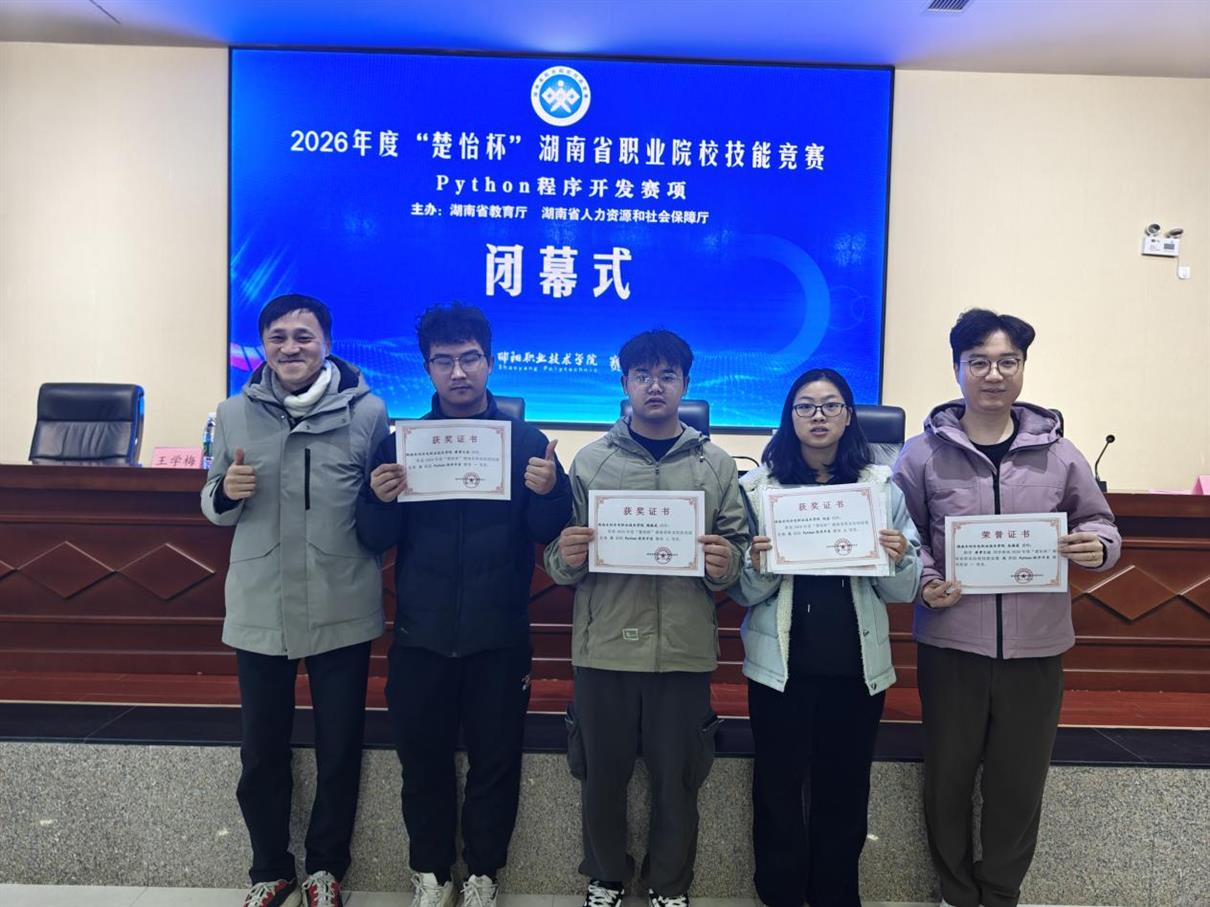 近日,2026年度湖南省“楚怡杯”职业院校技能竞赛Python程序开发赛项在邵阳职业技术学院圆满落幕。此次比赛吸引了63所高职院校共187名参赛选手参加,我校信息安全技术学院3名参赛学子脱颖而出,2024级信息安全二班黄孝文迪获一等奖,2025级信息安全一班杨振武获二等奖,2024级信息安全一班刘姿获三等奖。更值得庆贺的是,这是我校连续两年在该赛项中荣获一等奖,彰显了我校在相关技能人才培养领域的坚实实力。