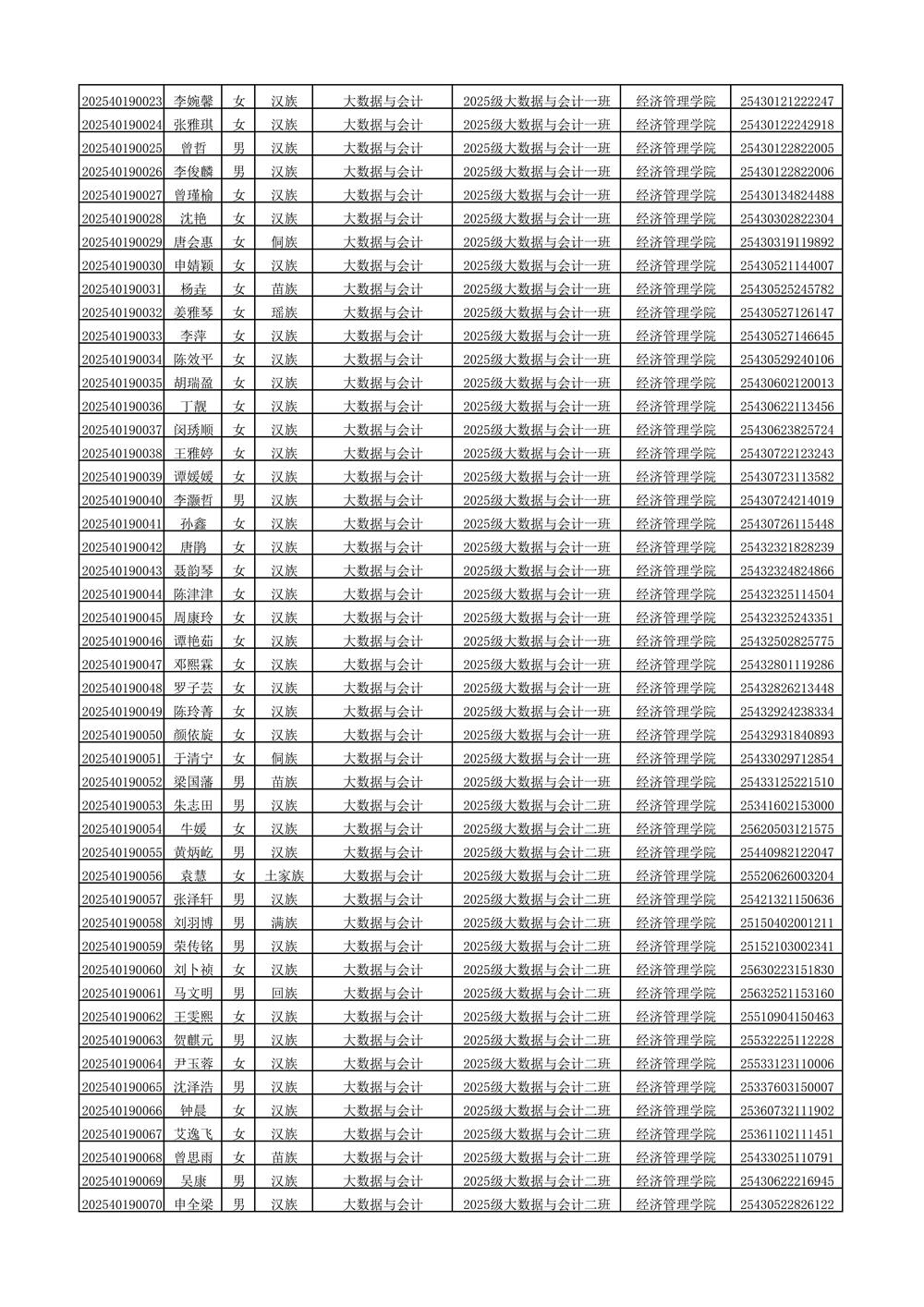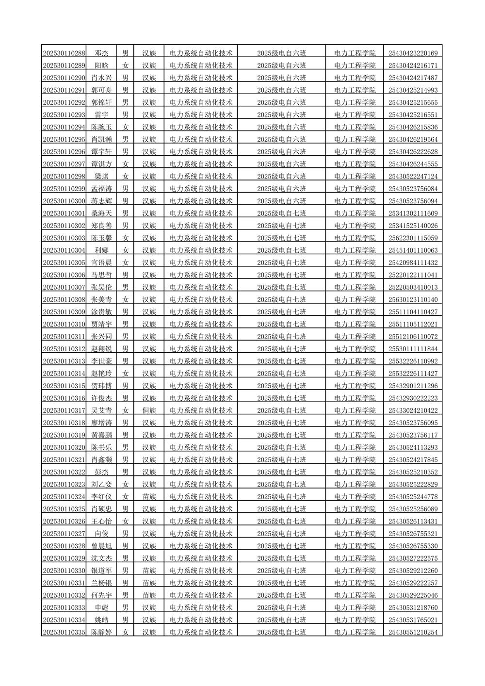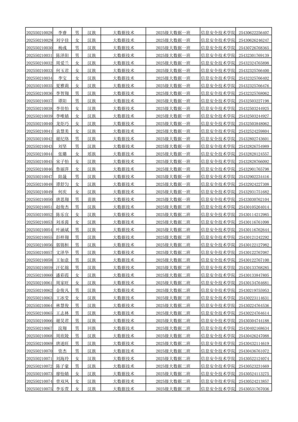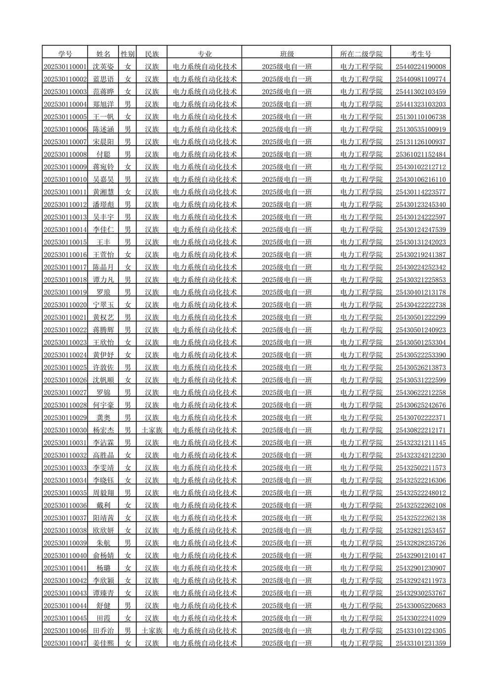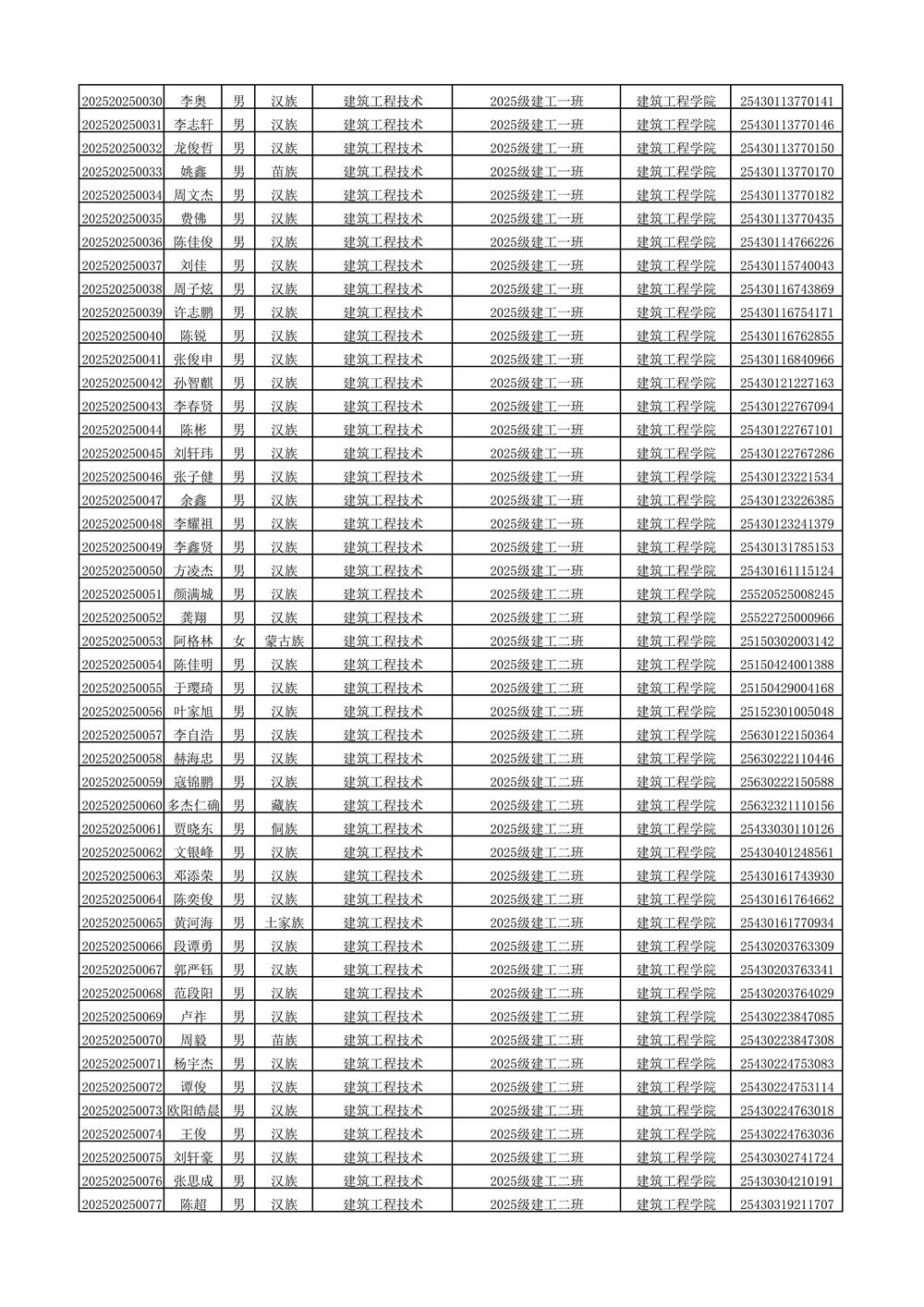 2025年新生分班名单