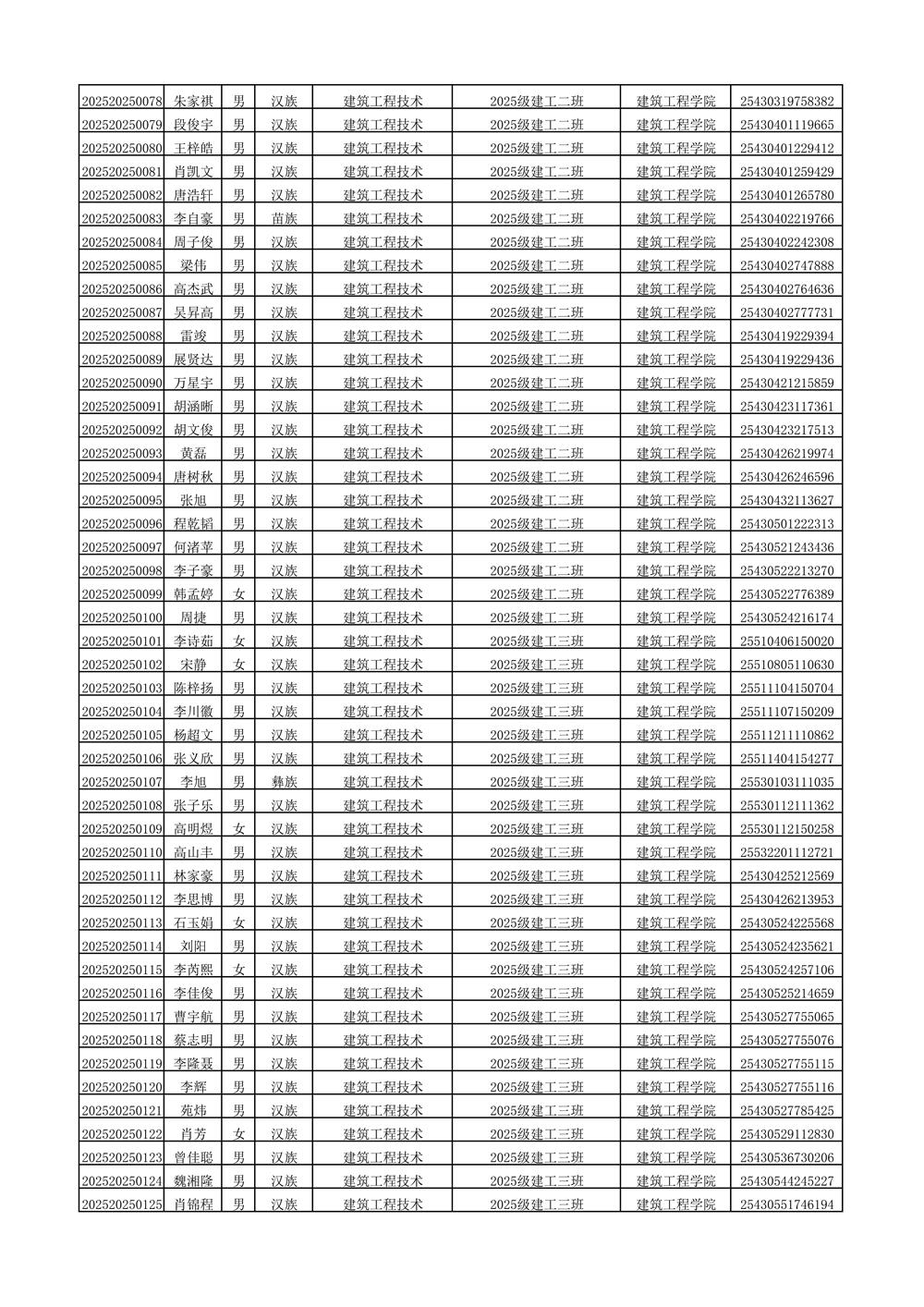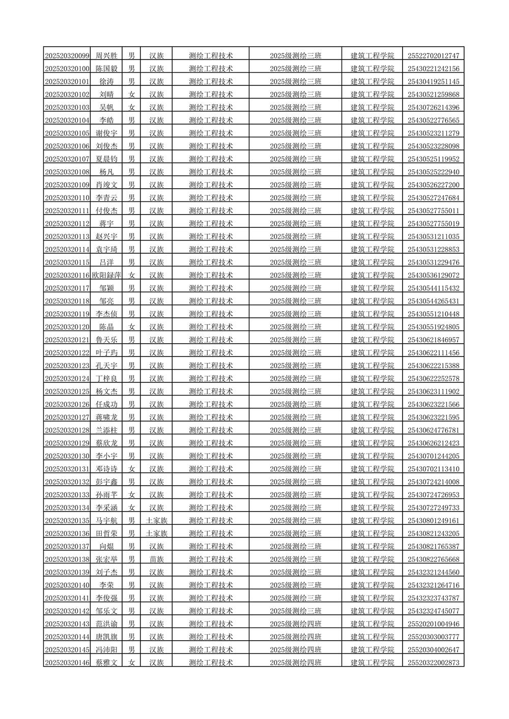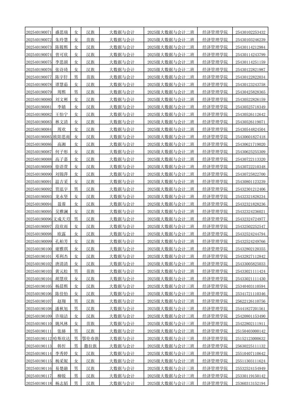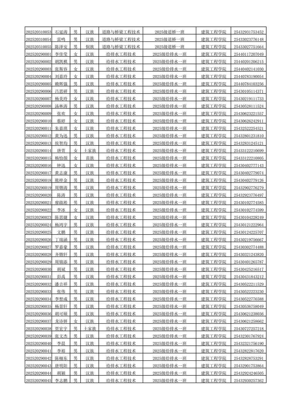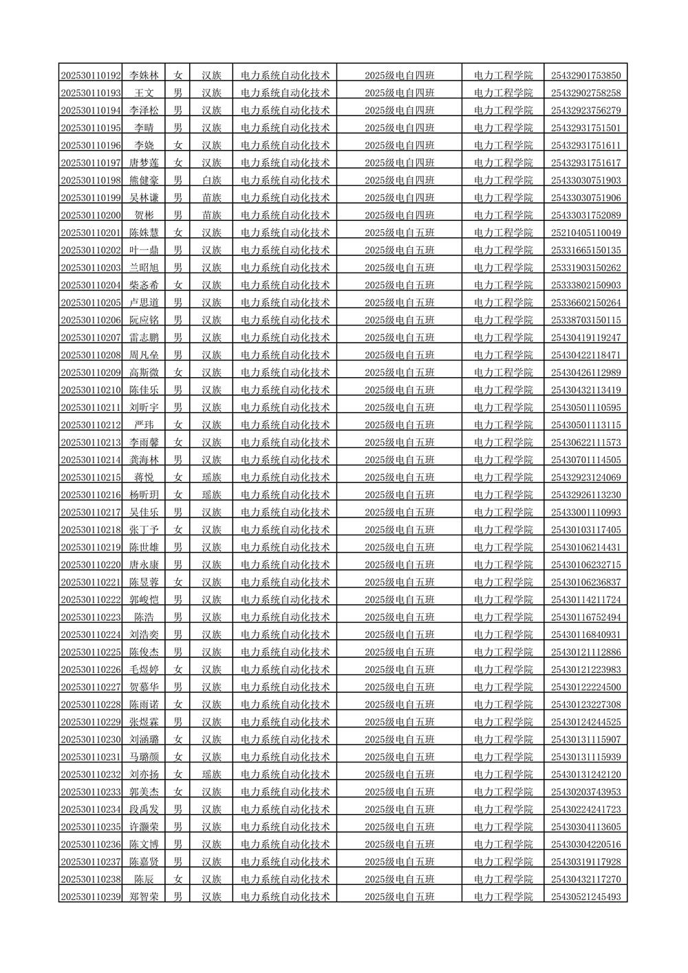 2025年新生分班名单