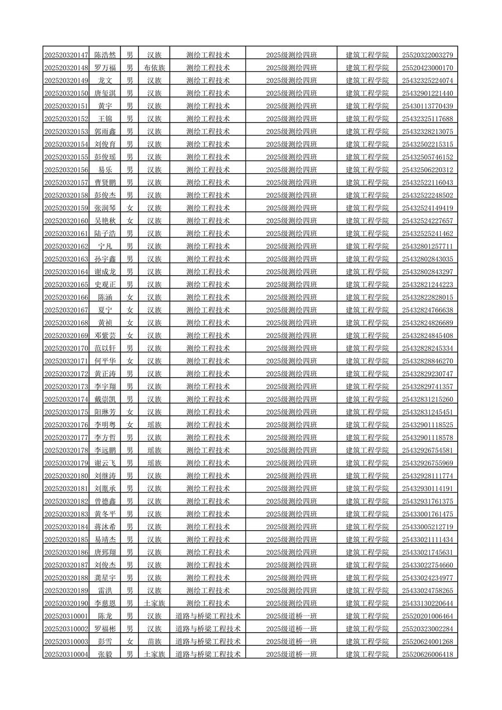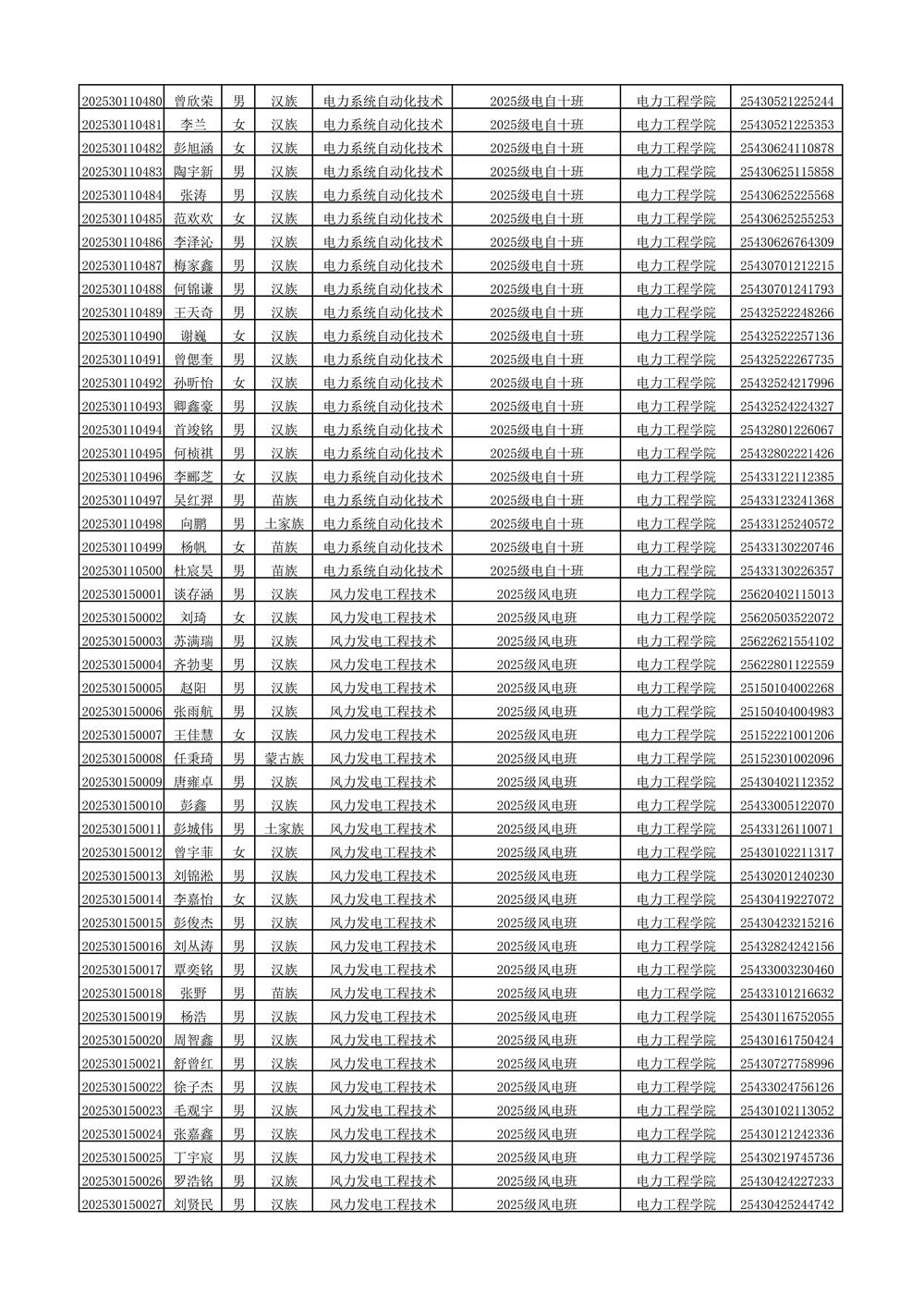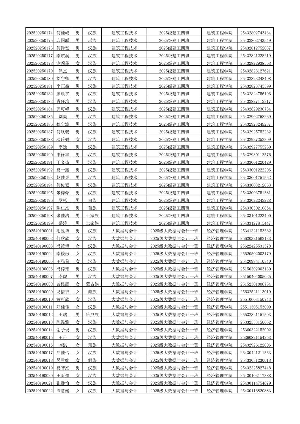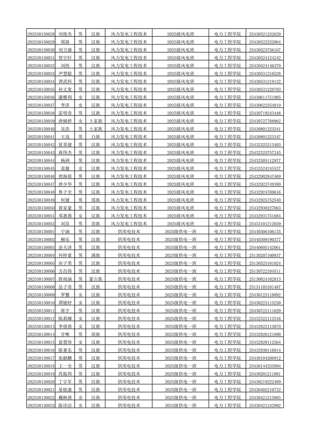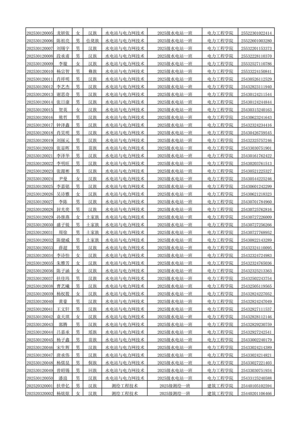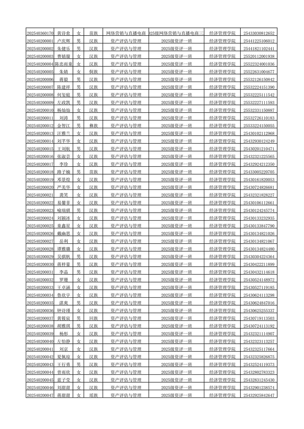 2025年新生分班名单