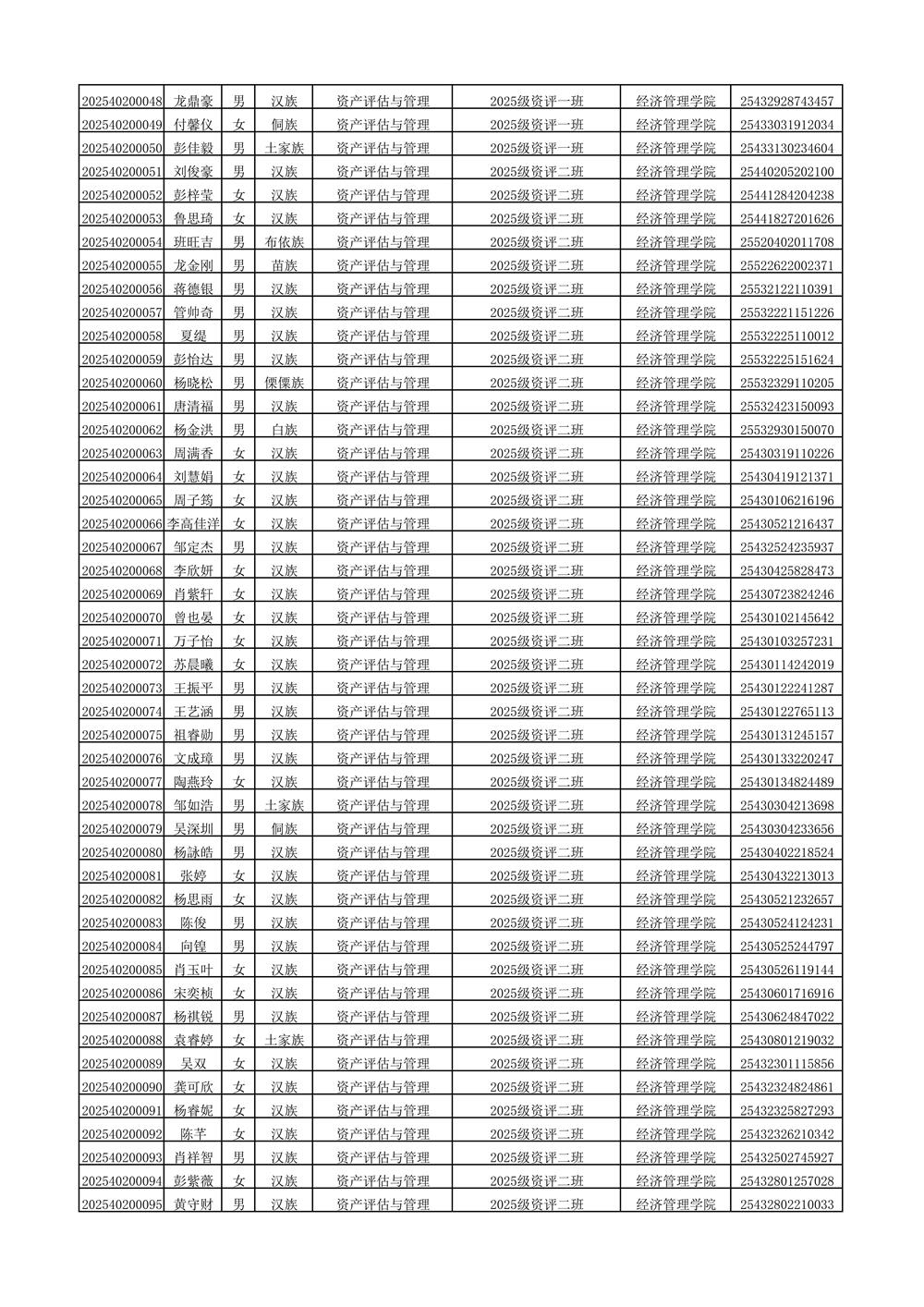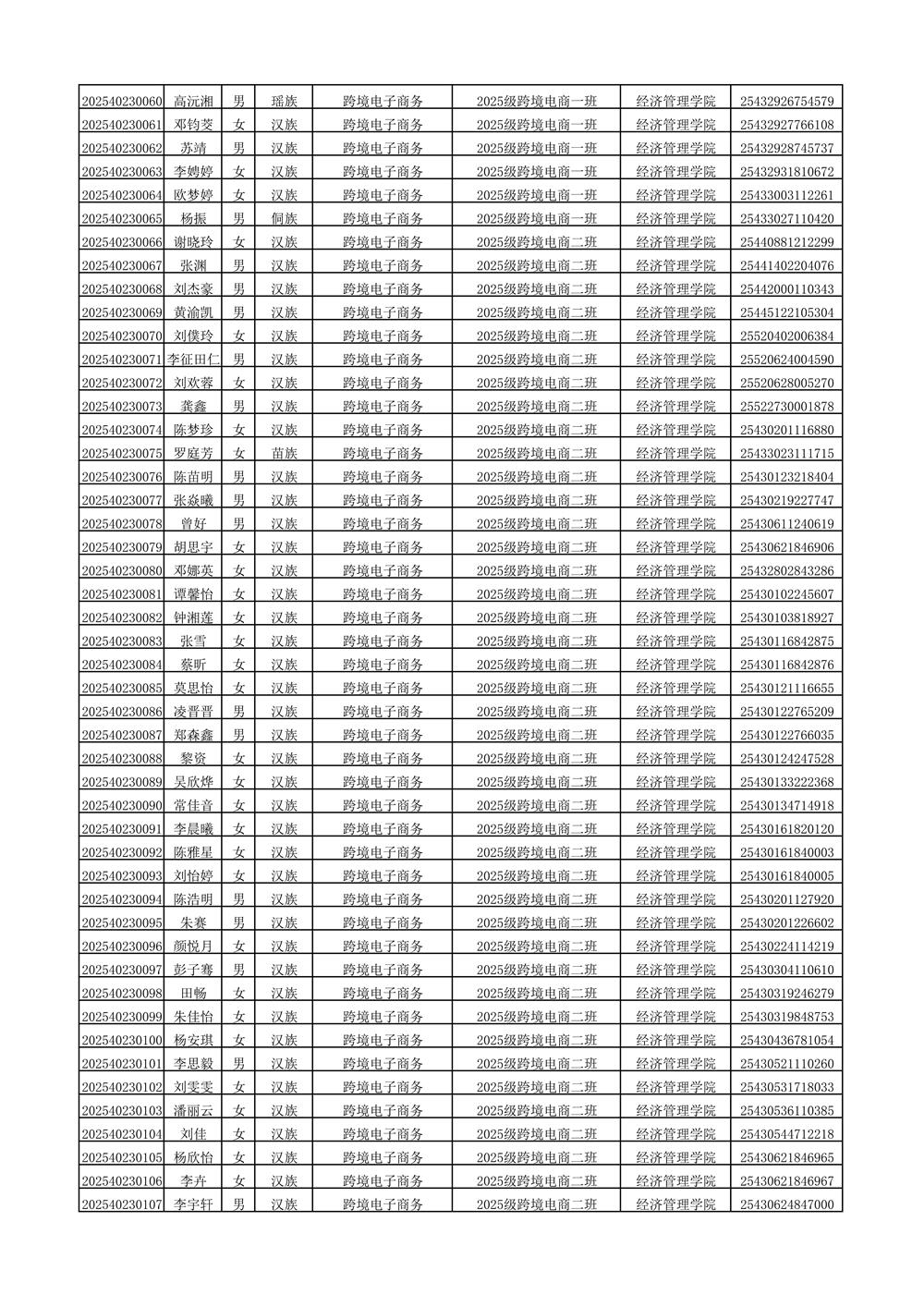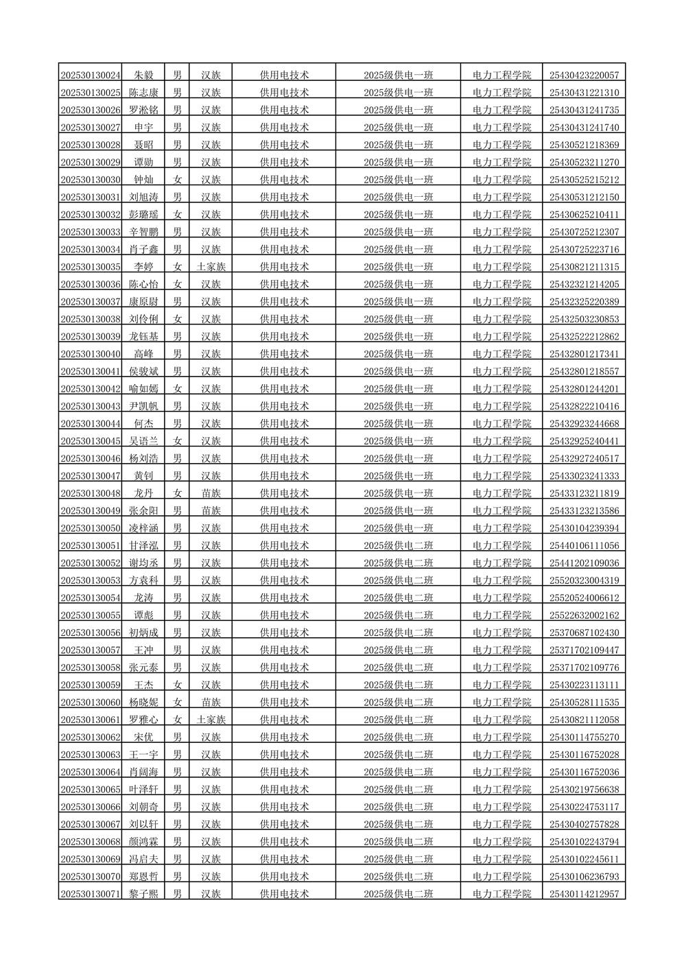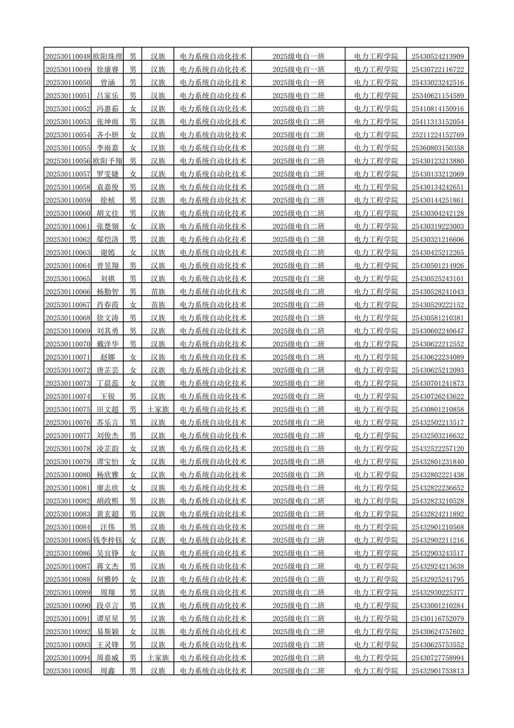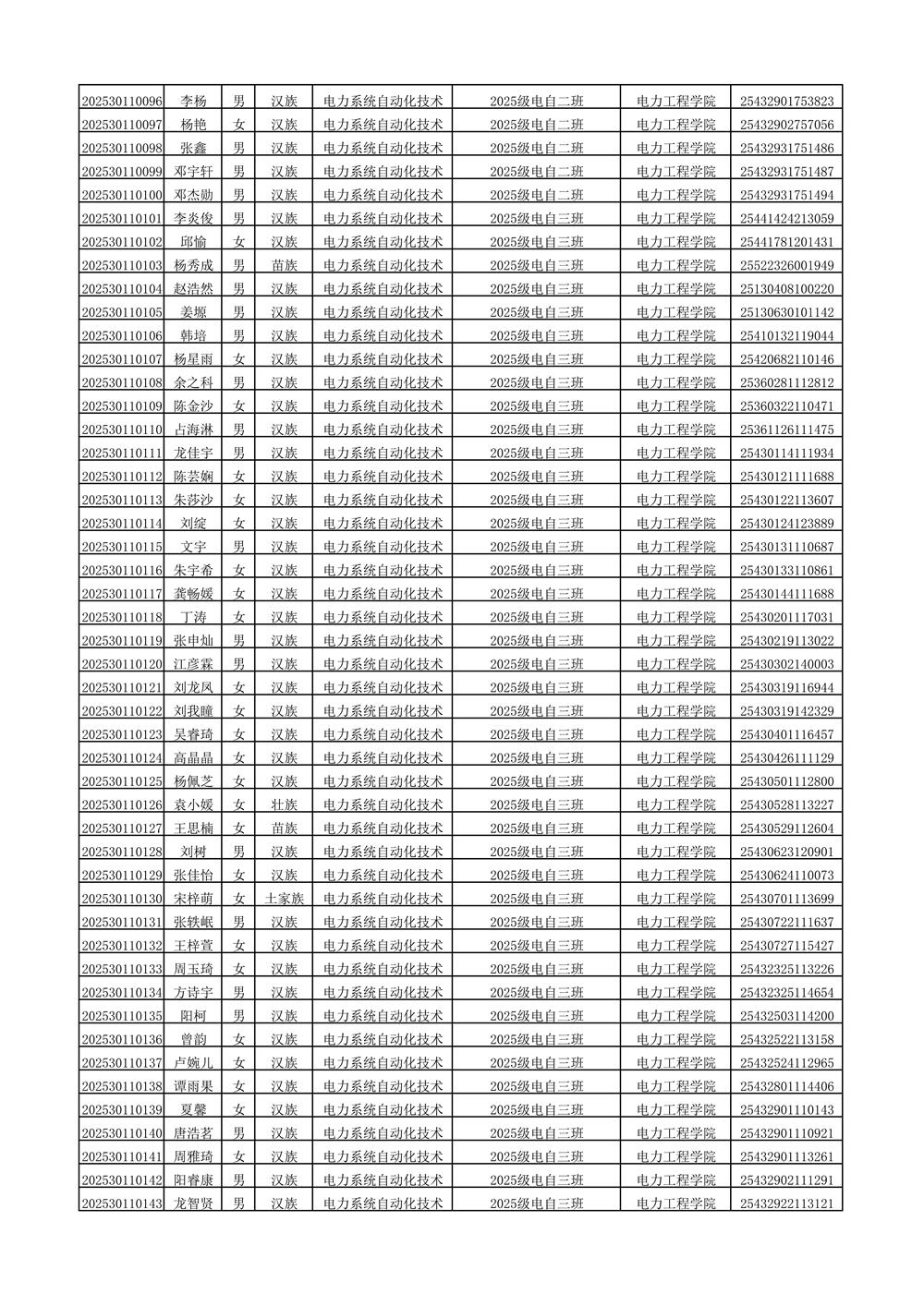 2025年新生分班名单