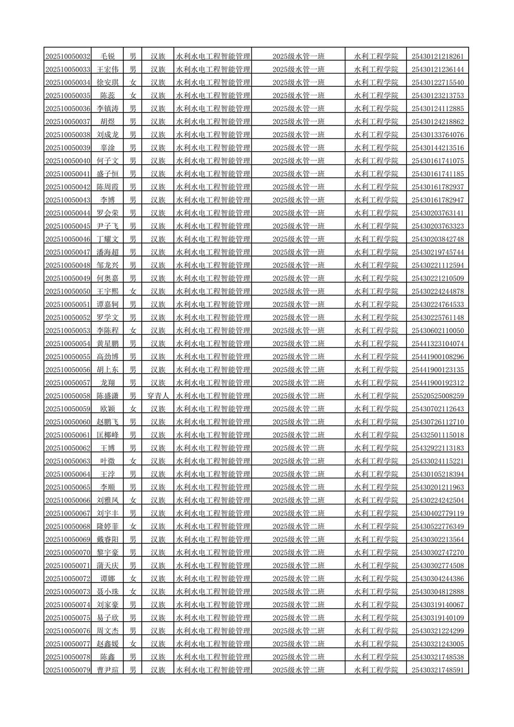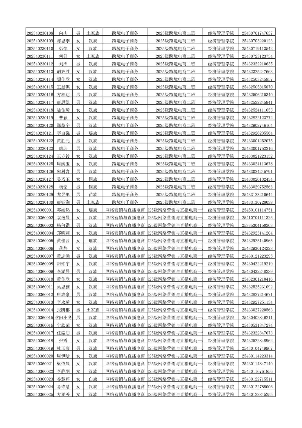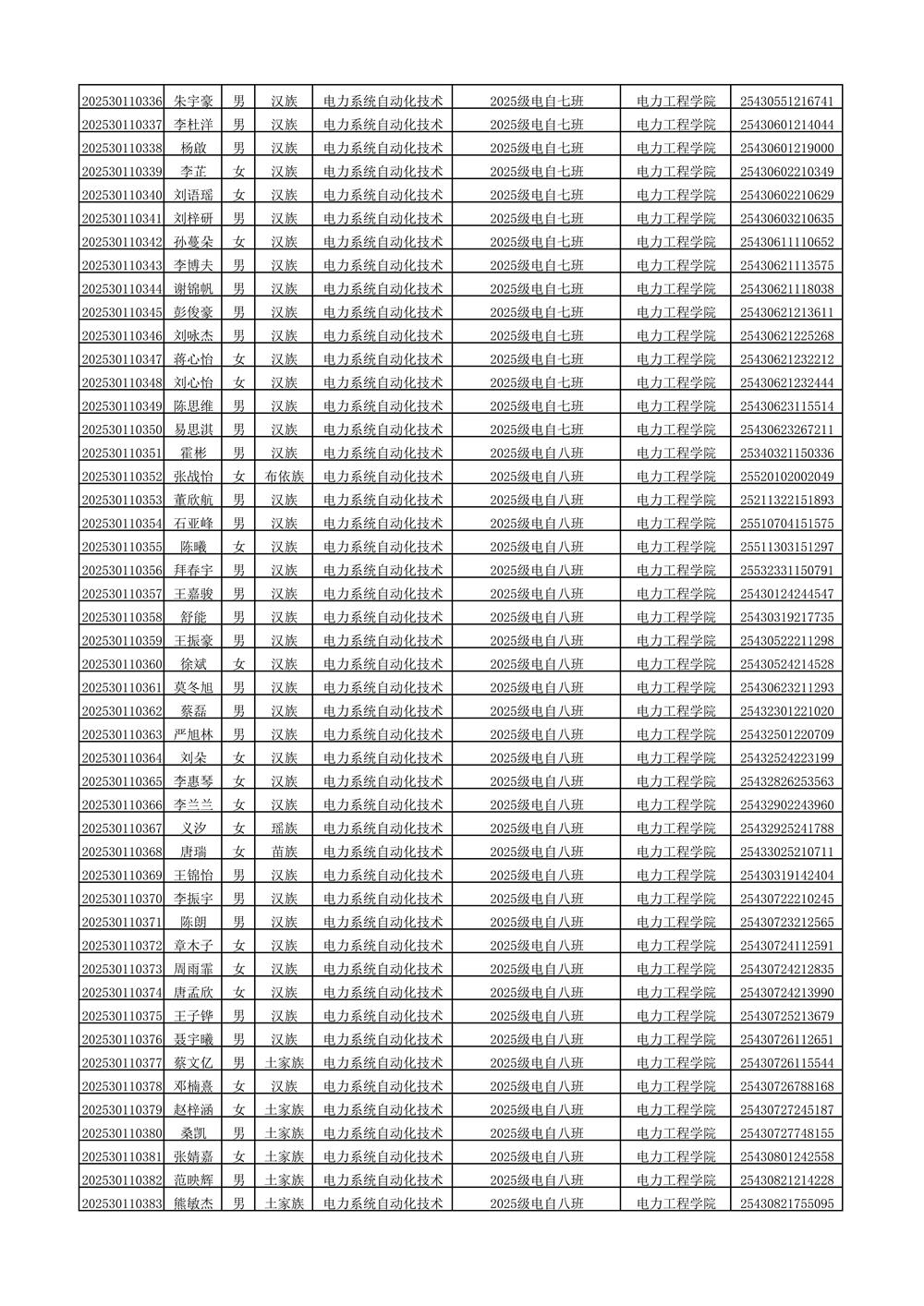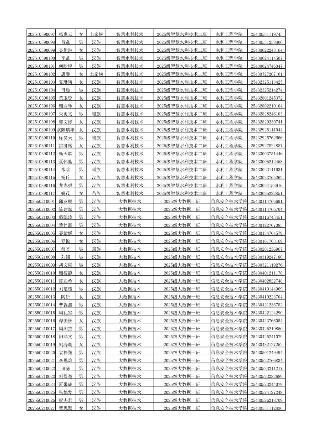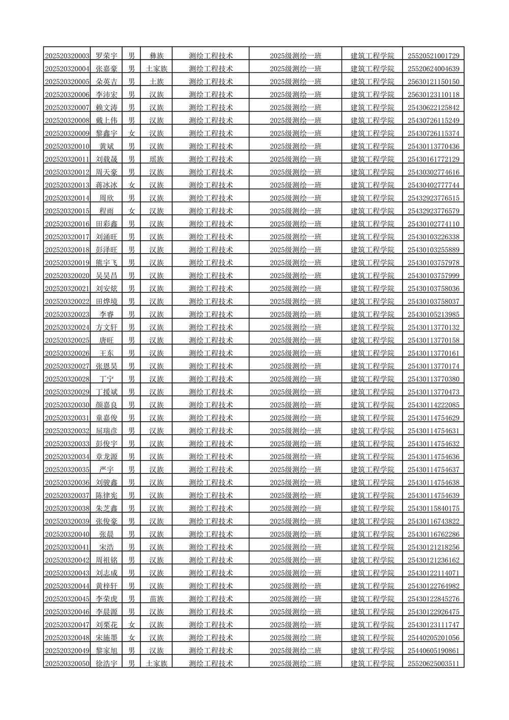 2025年新生分班名单