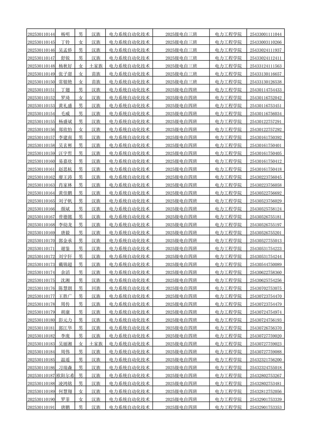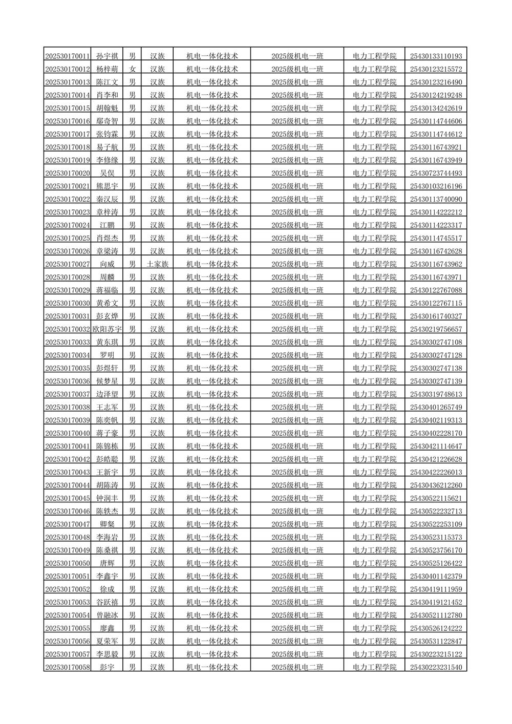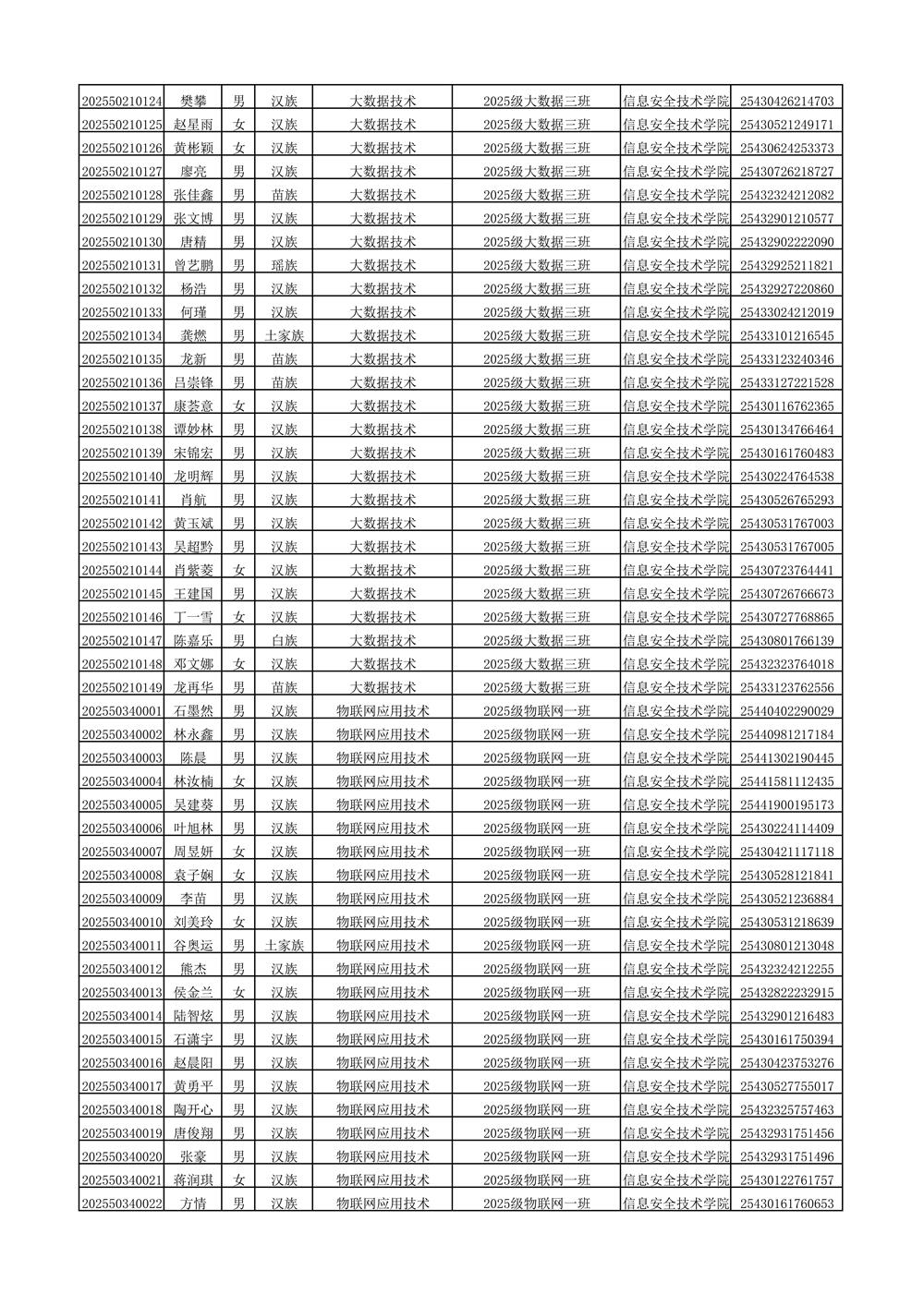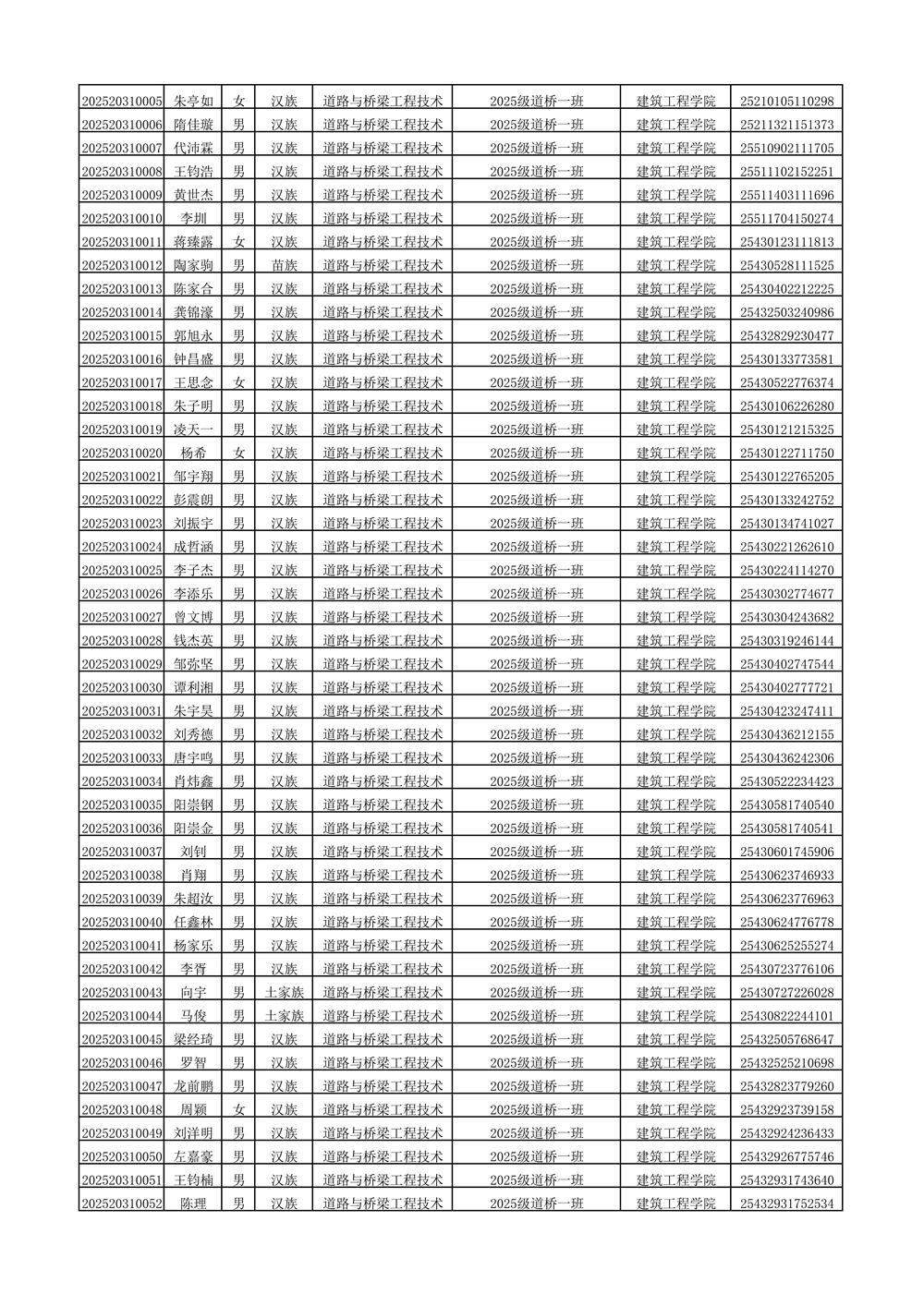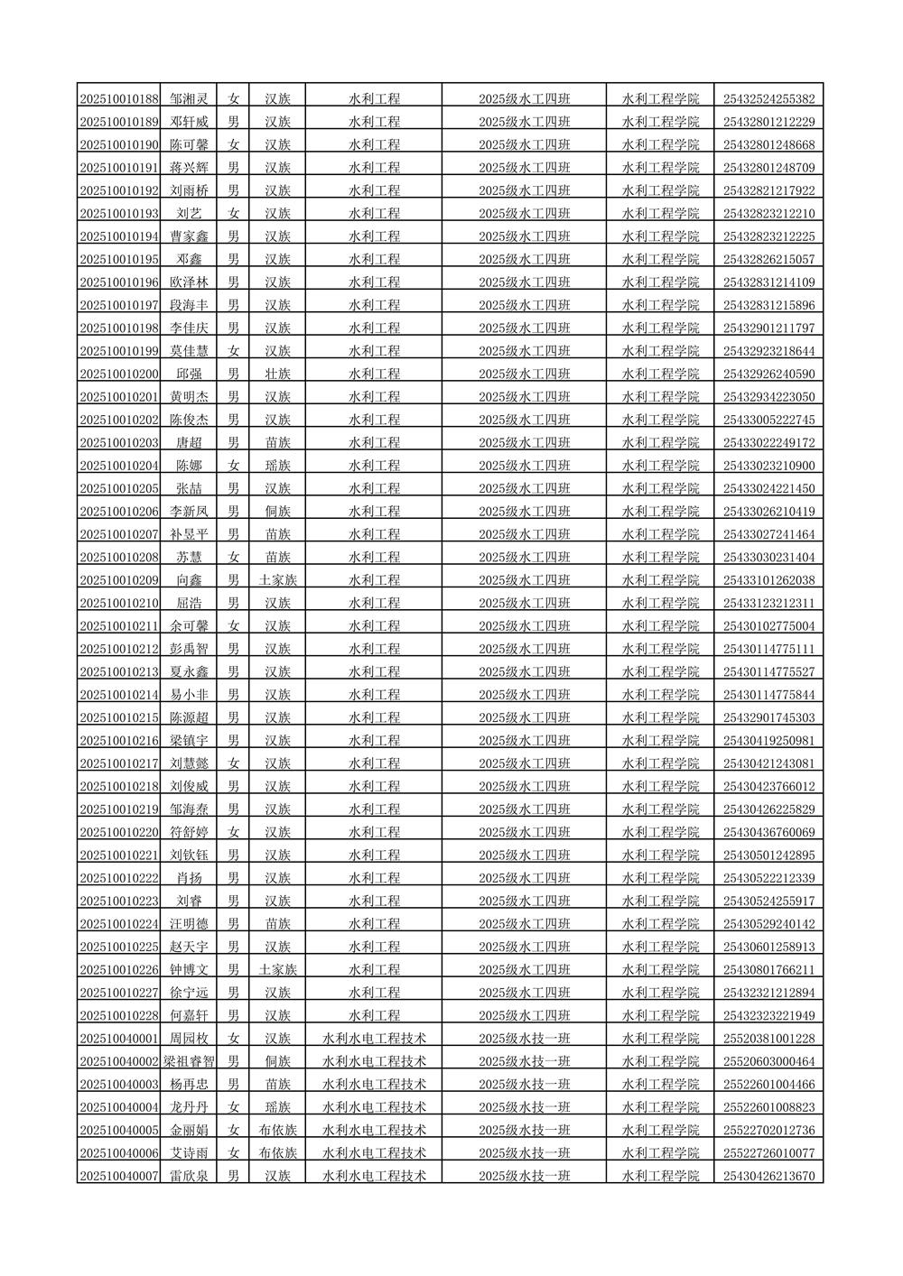2025年新生分班名单