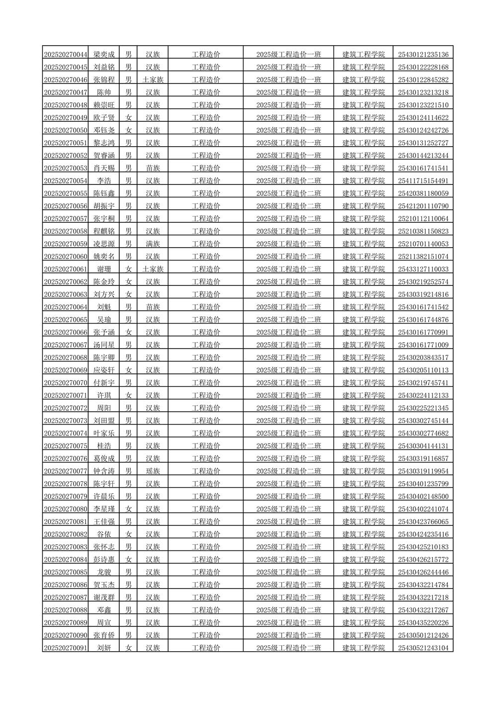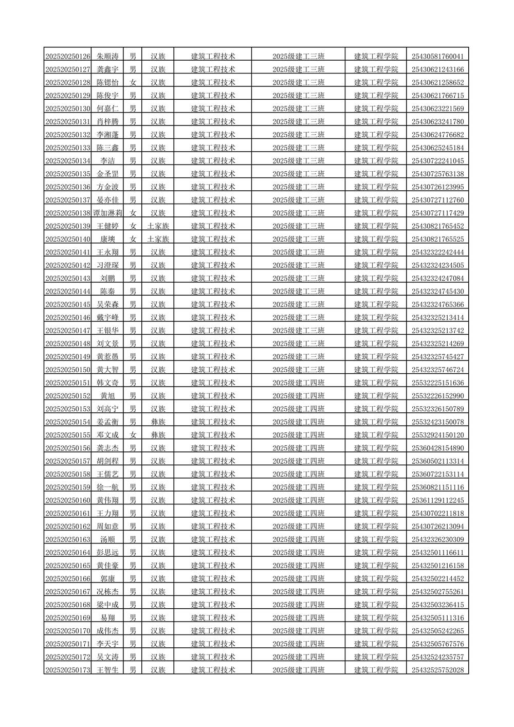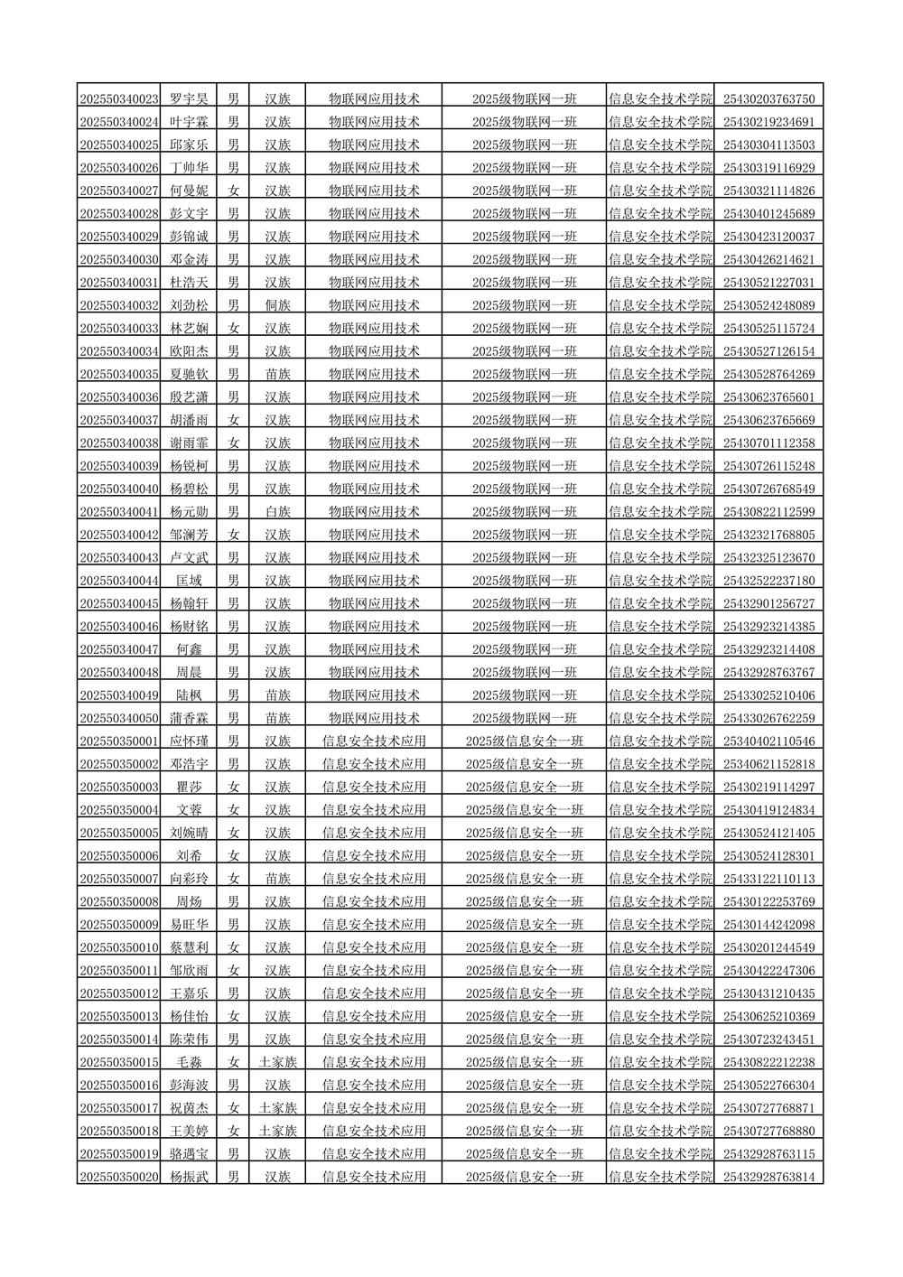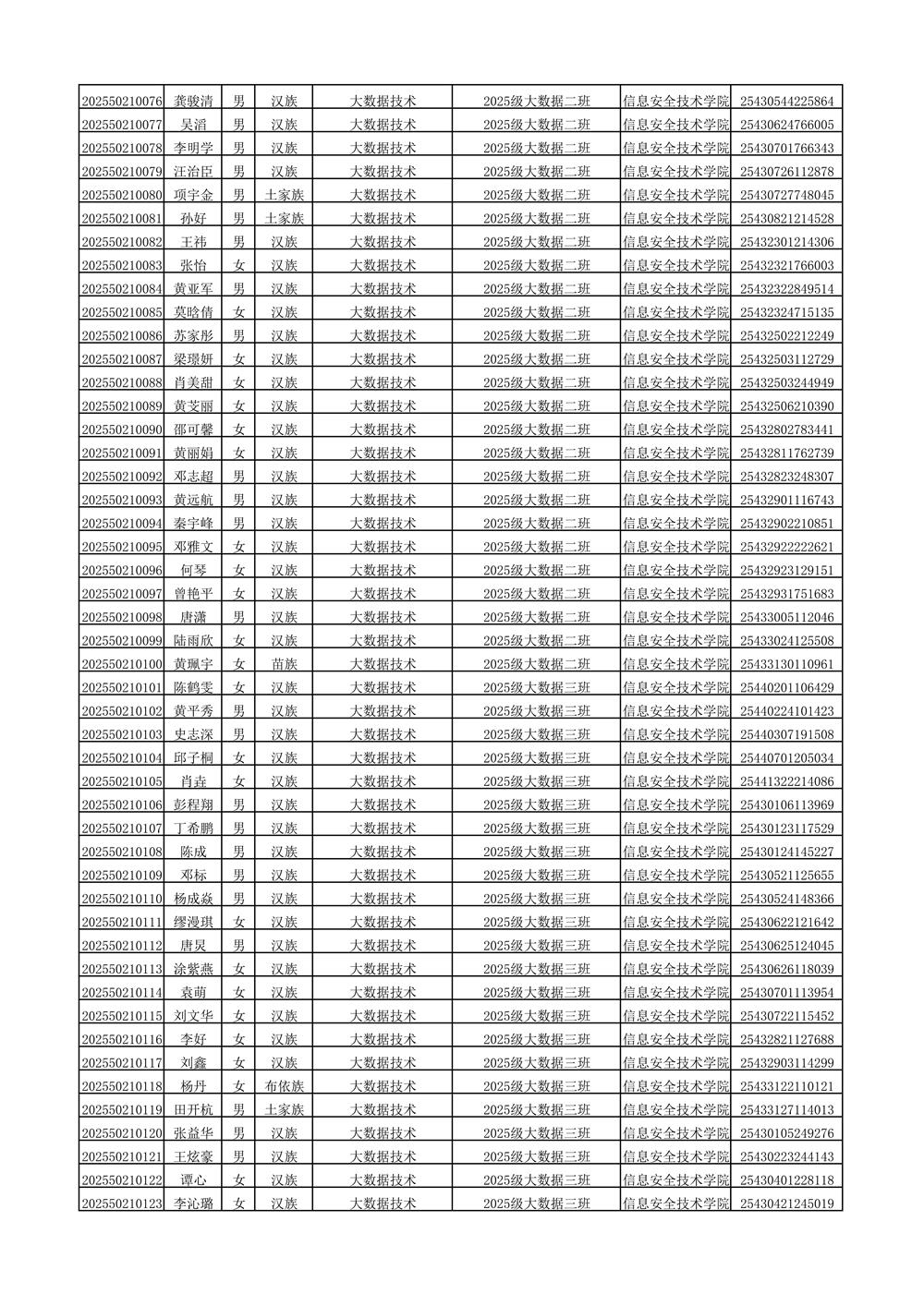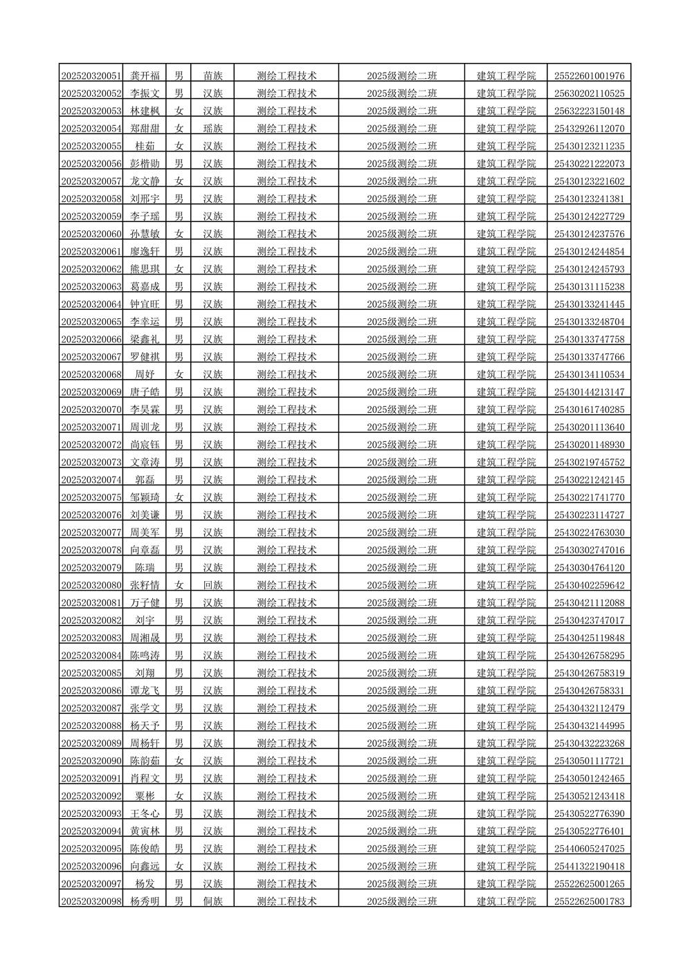 2025年新生分班名单