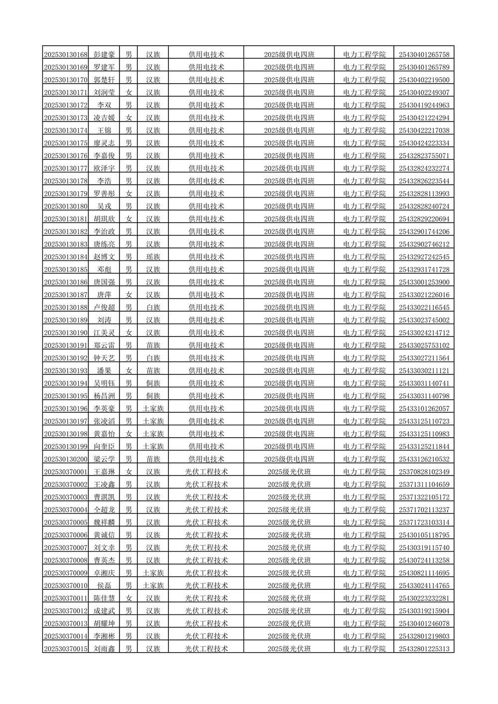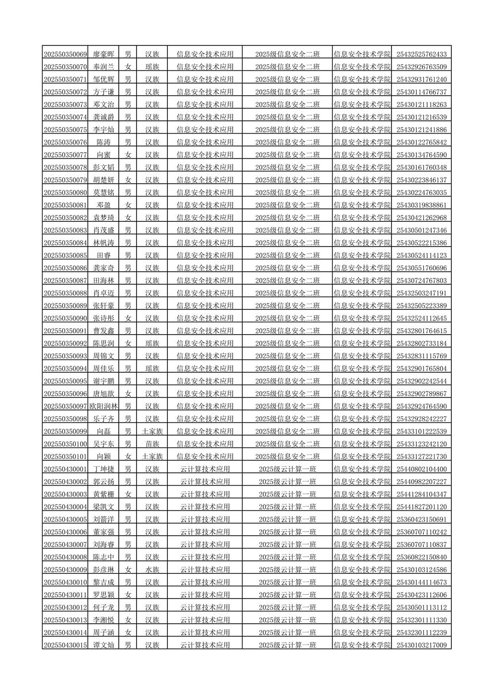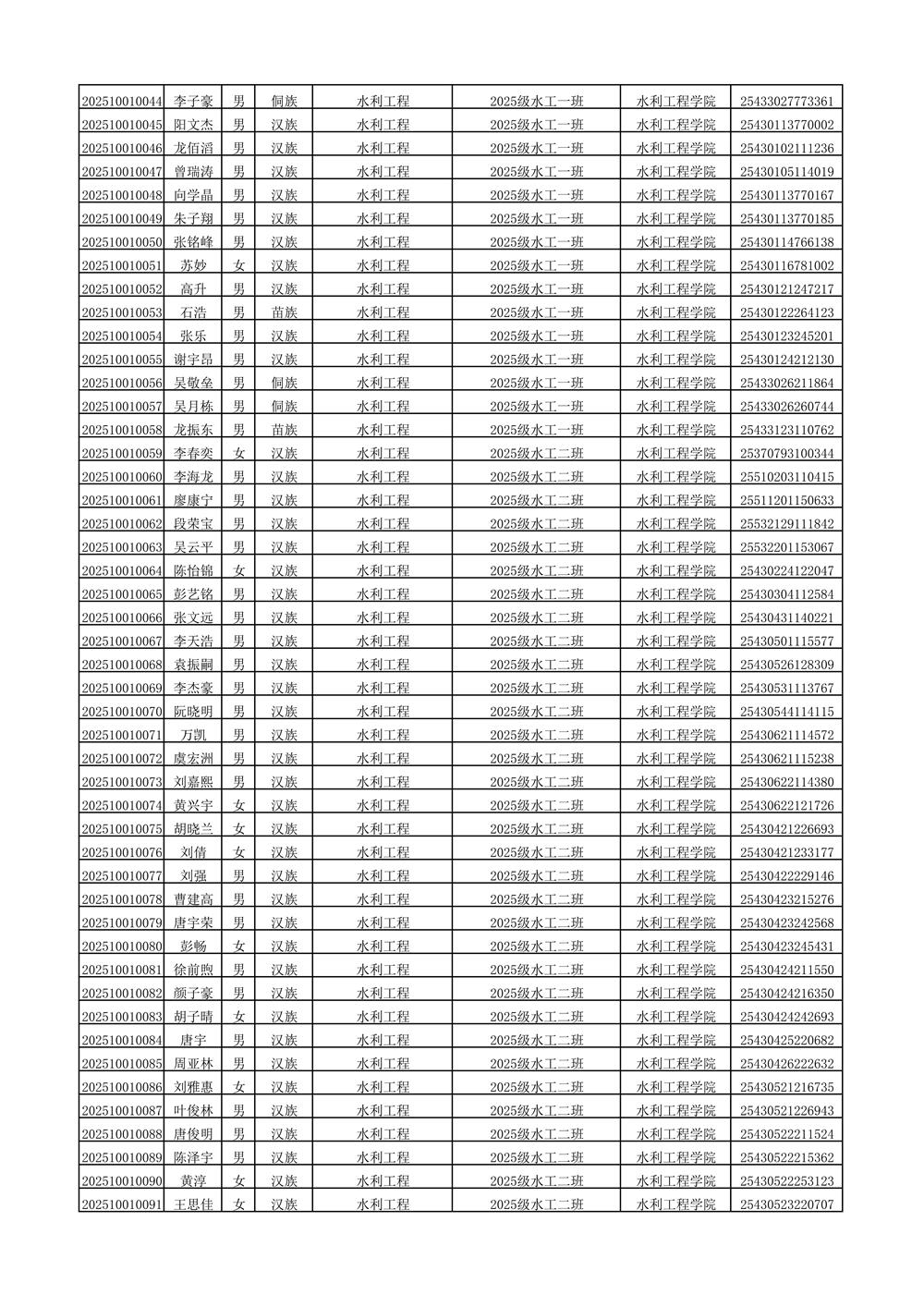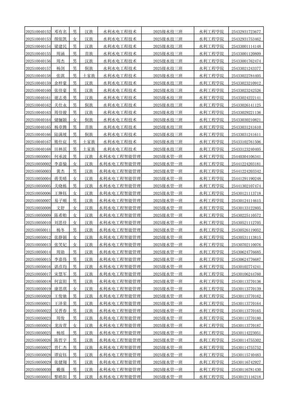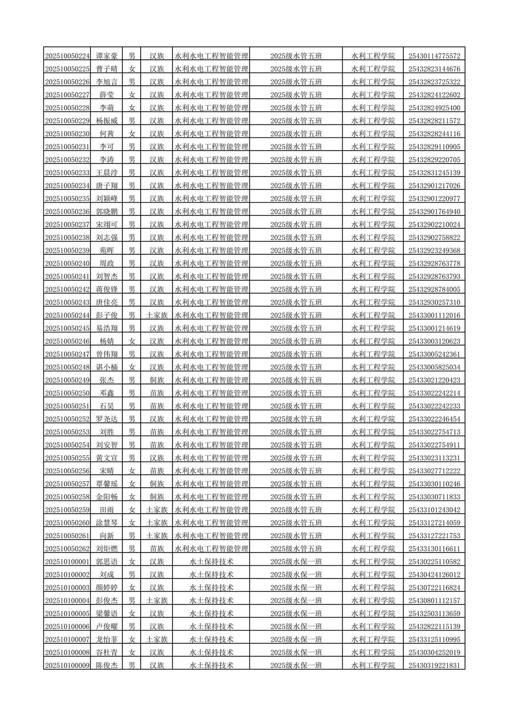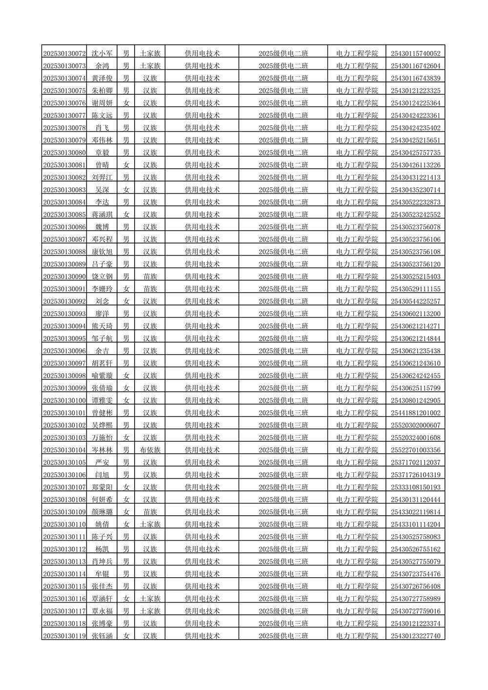 2025年新生分班名单