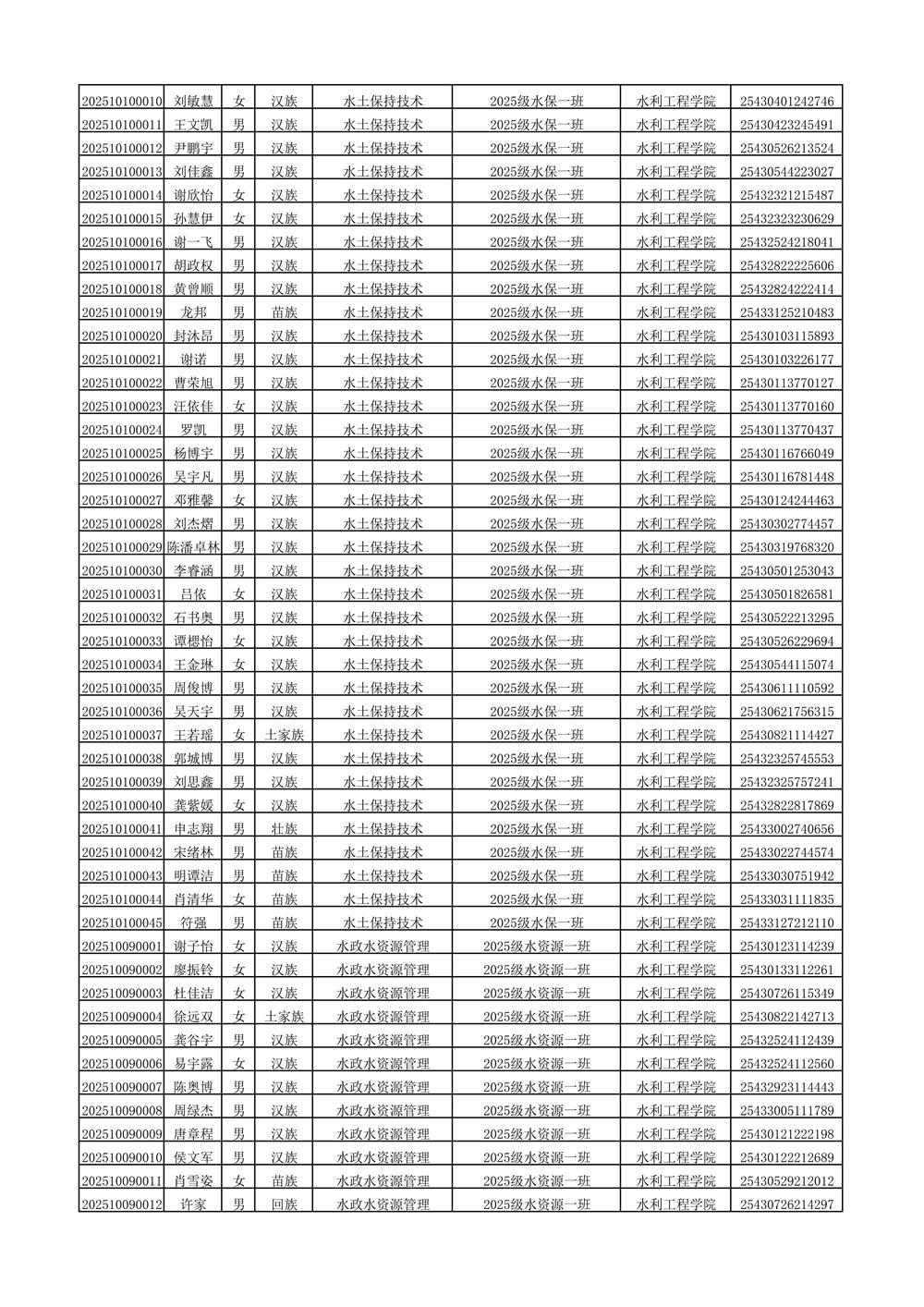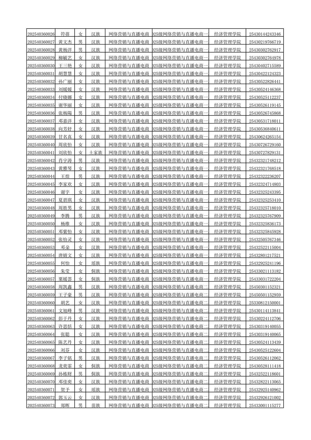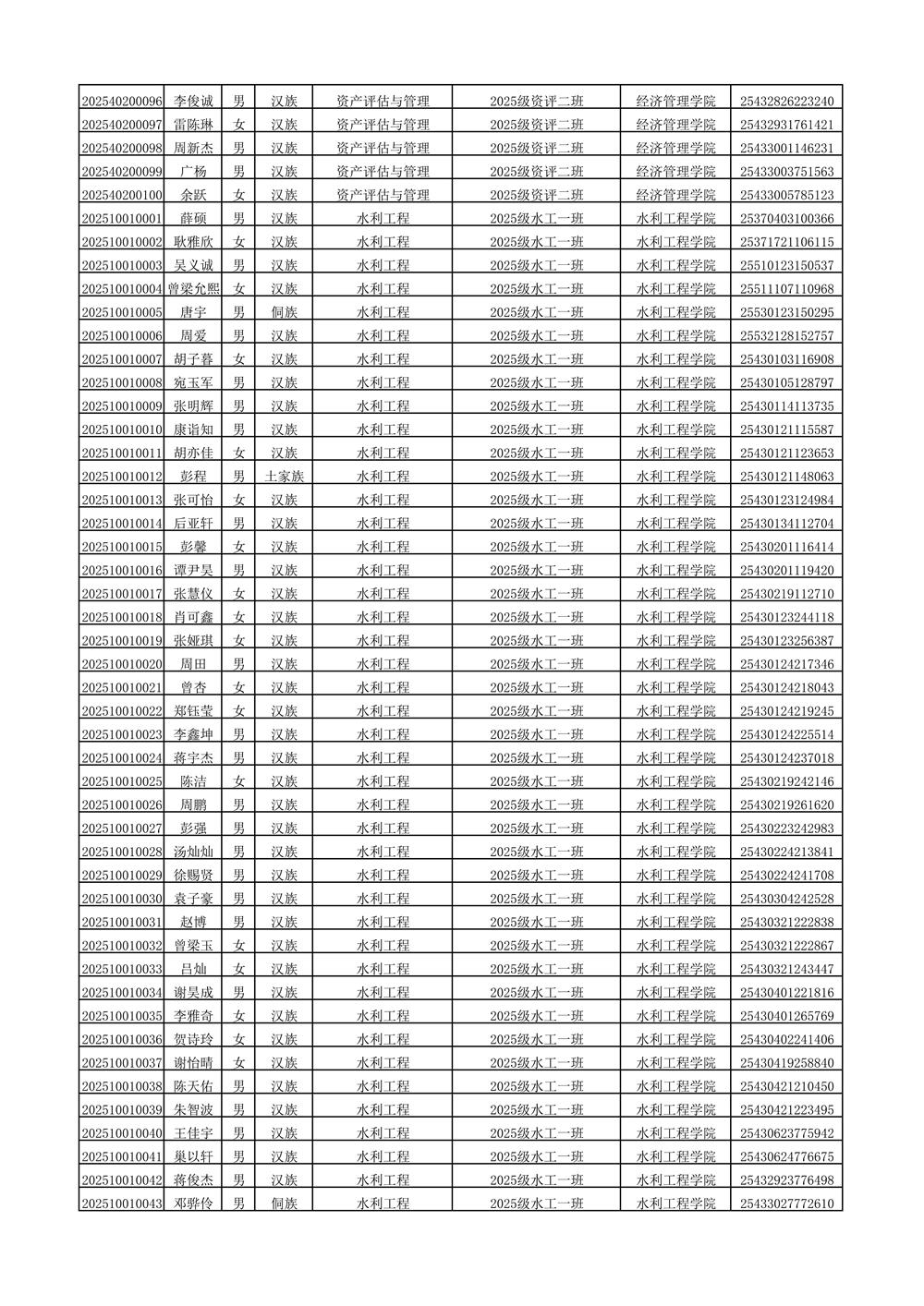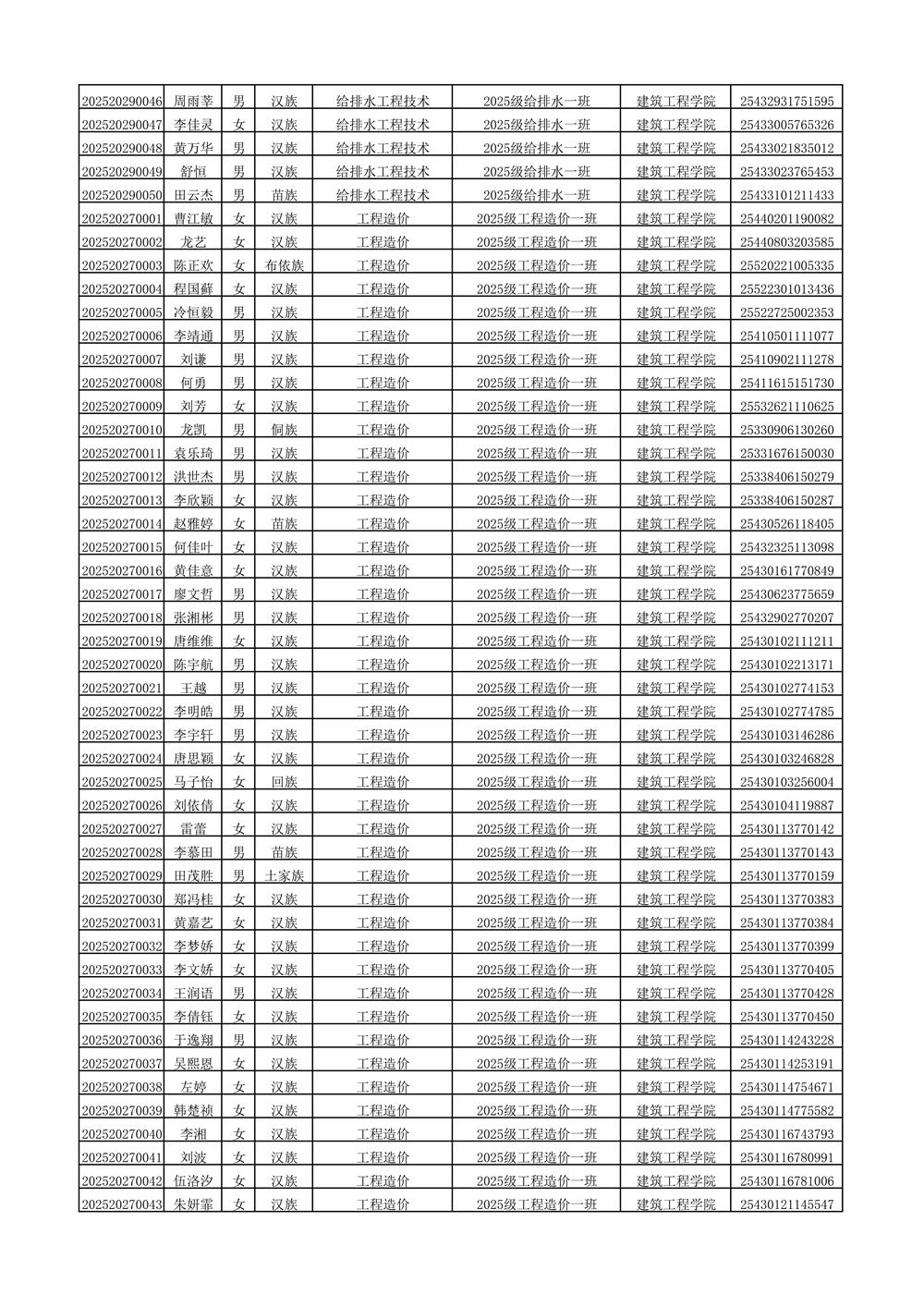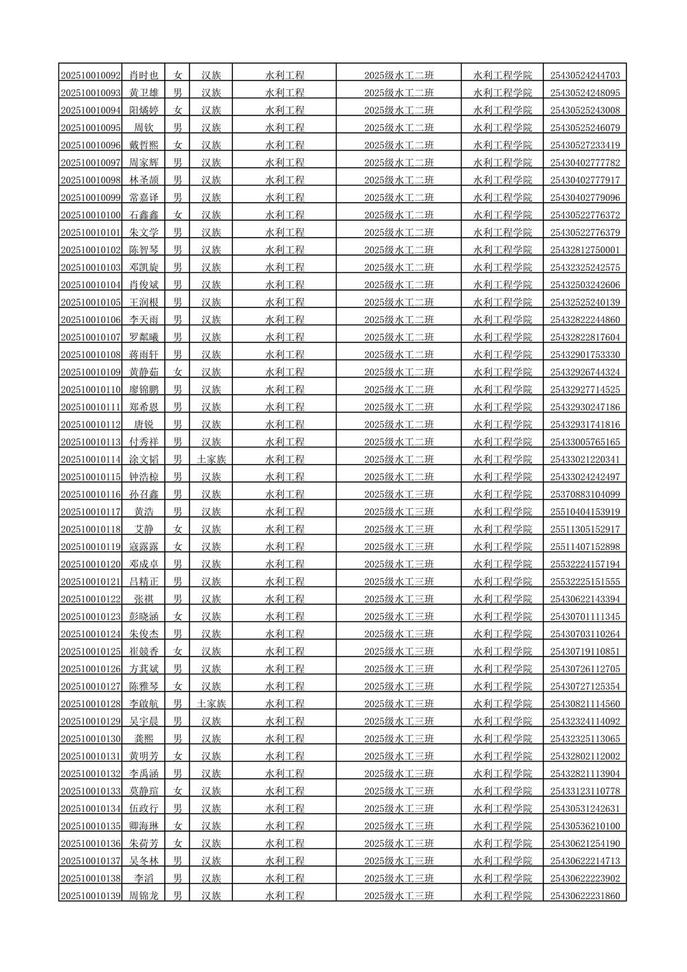 2025年新生分班名单