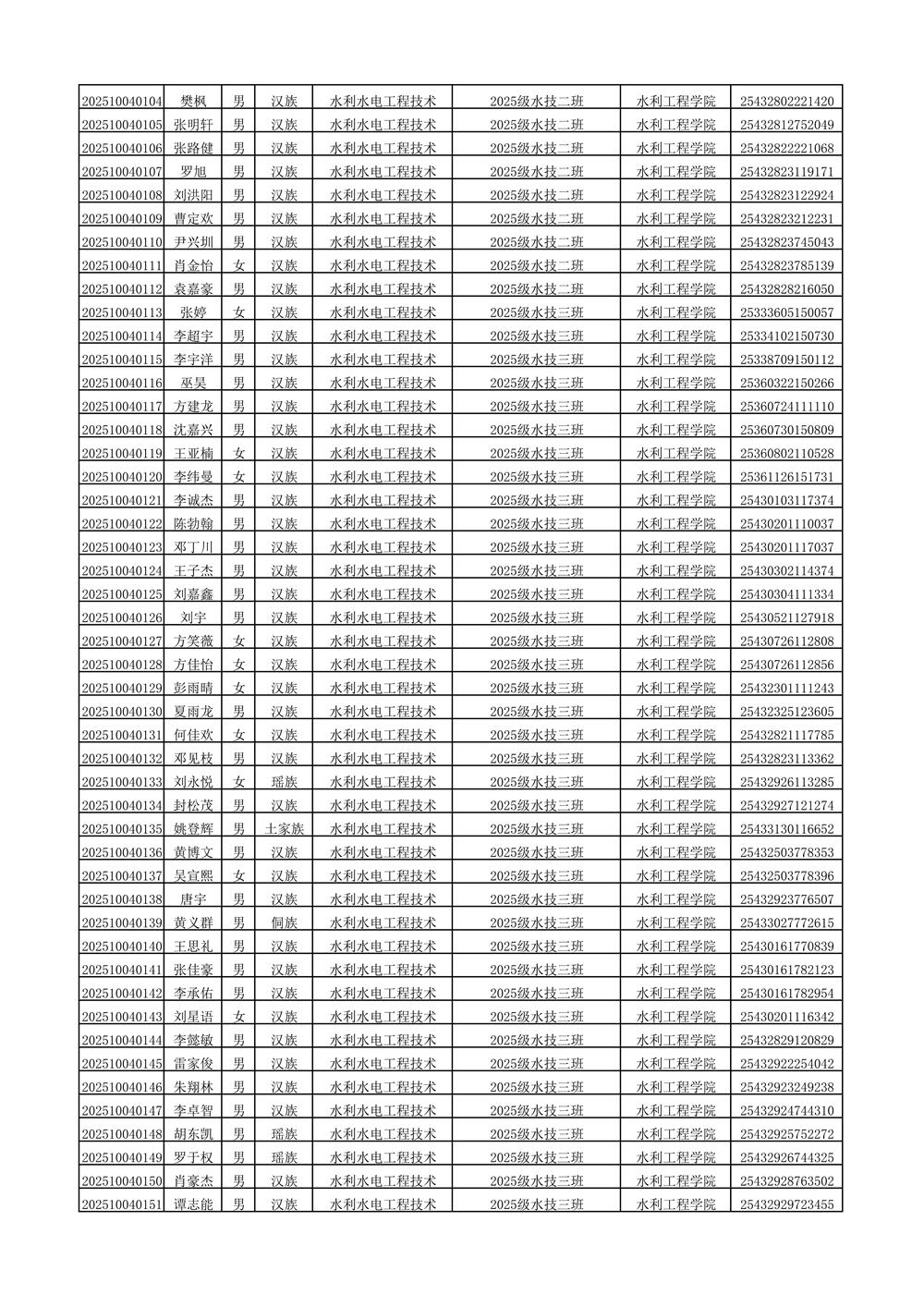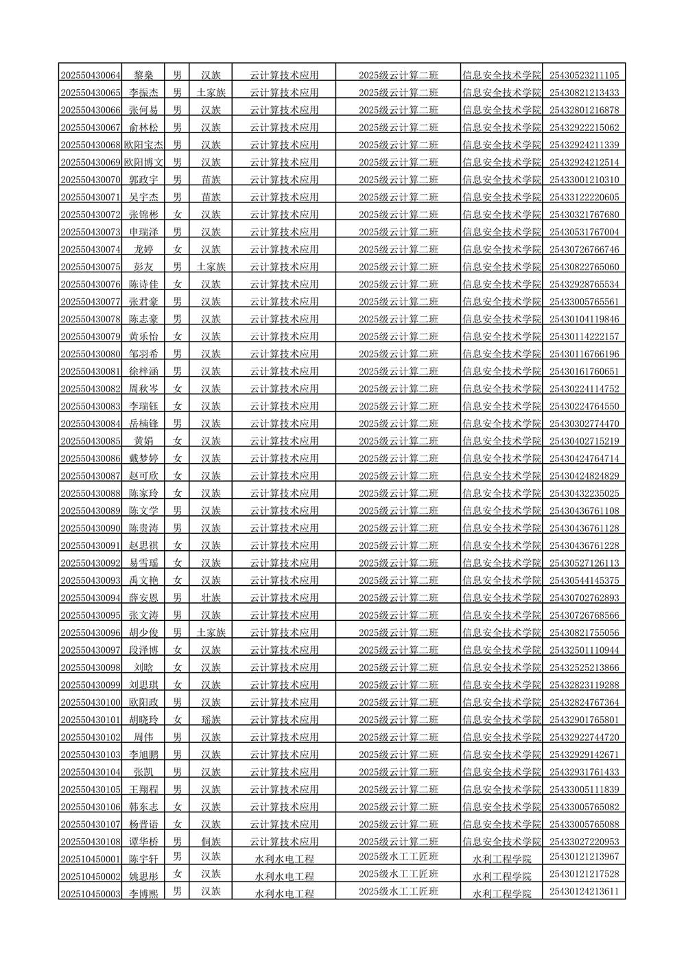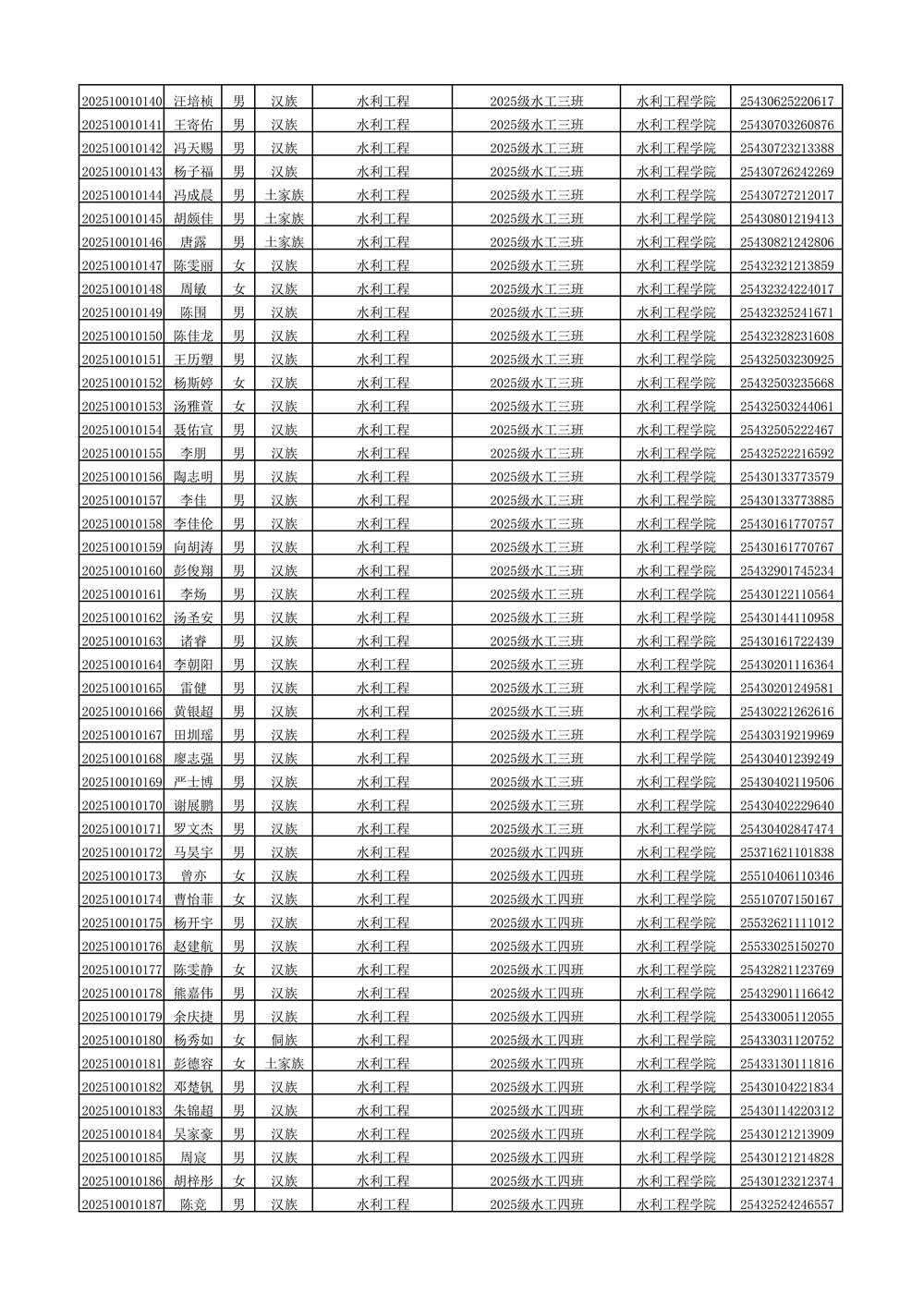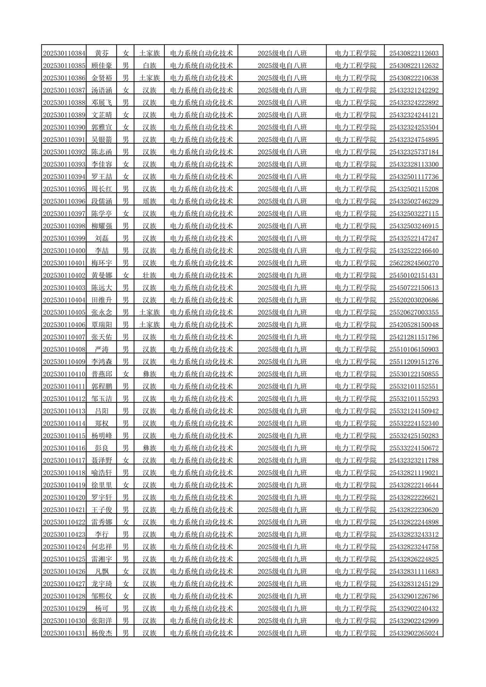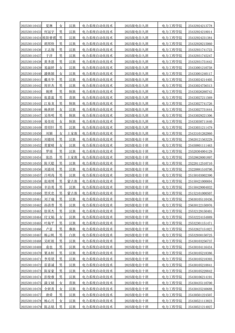 2025年新生分班名单