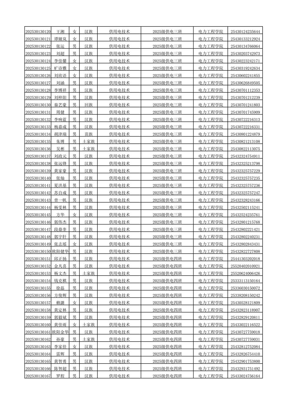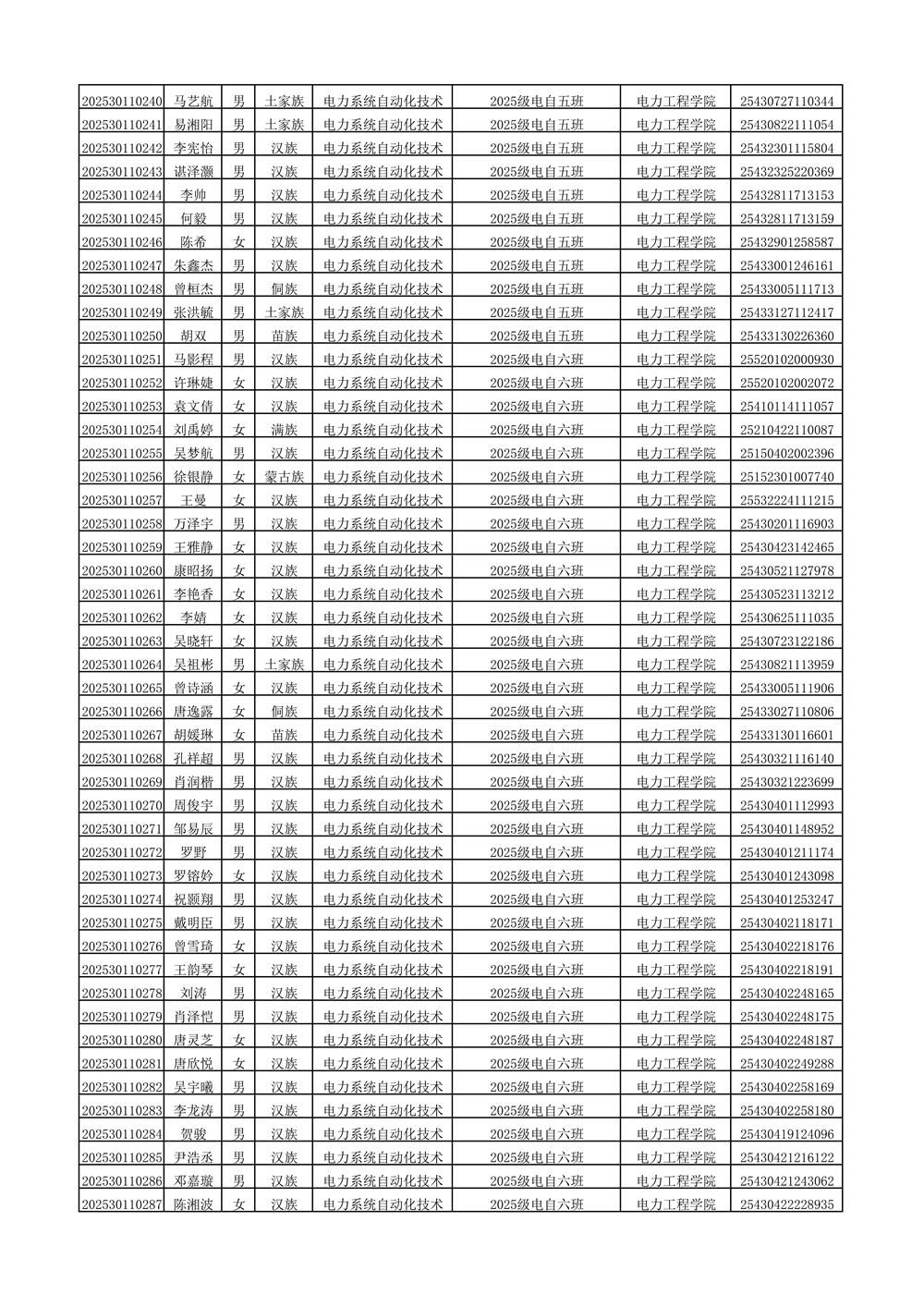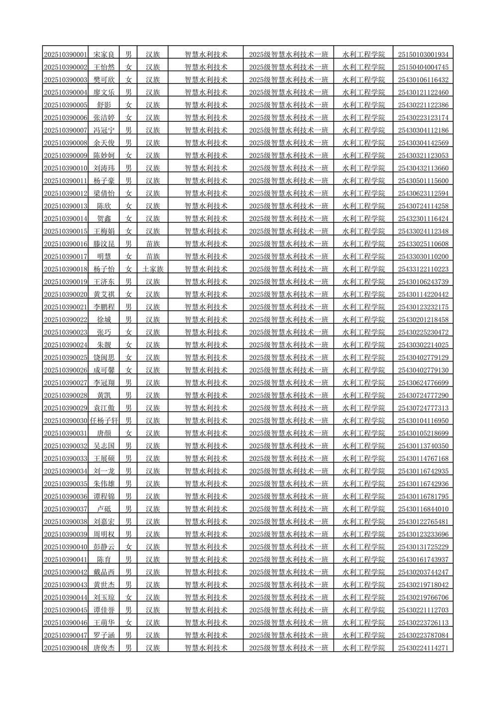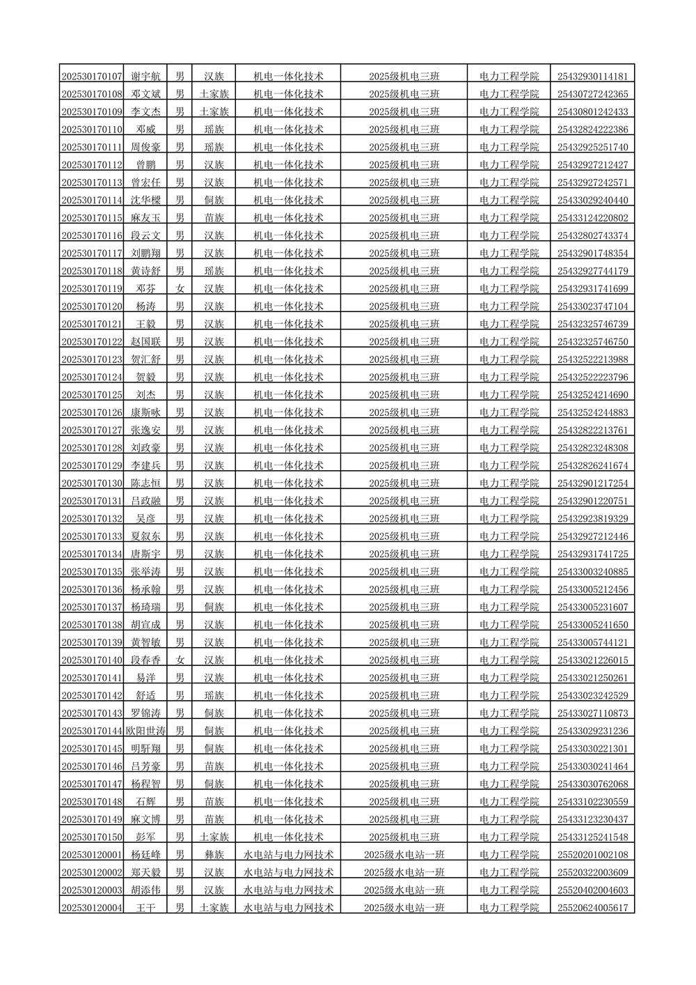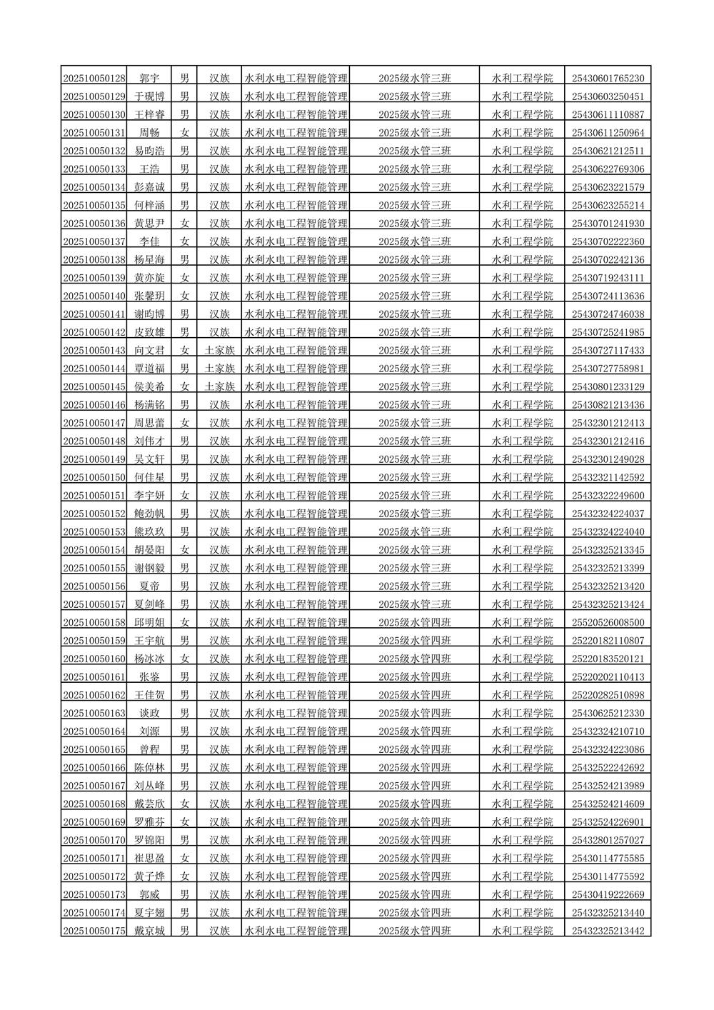 2025年新生分班名单