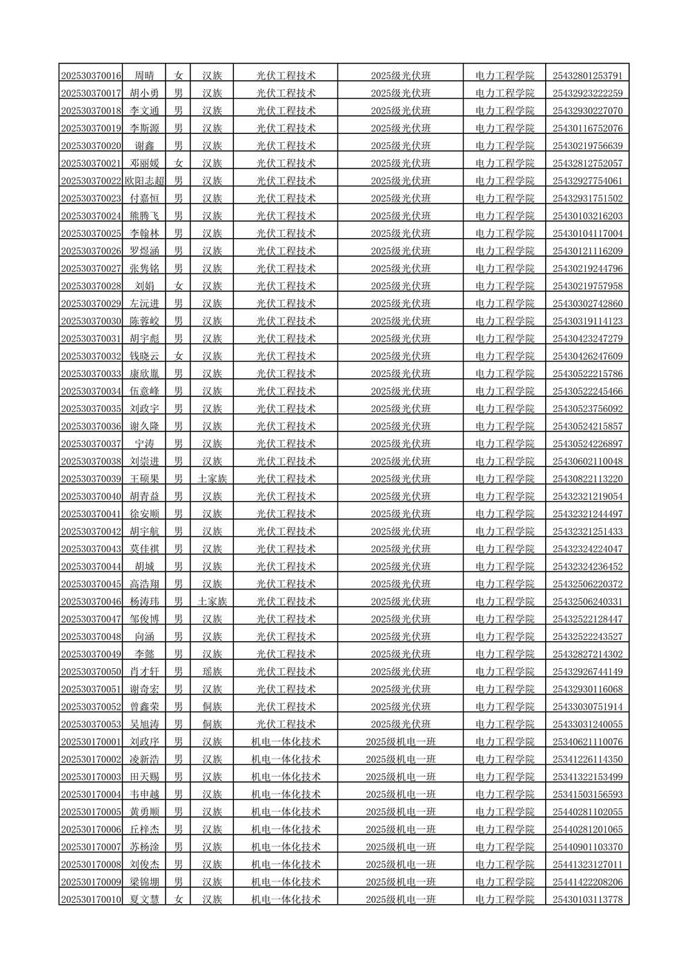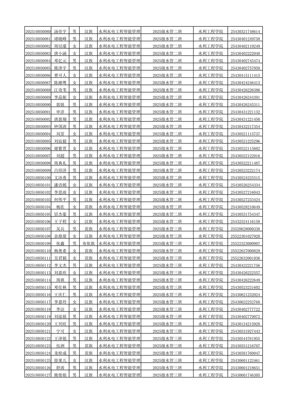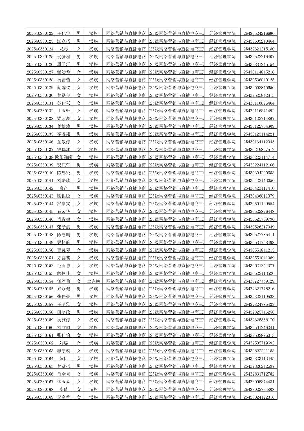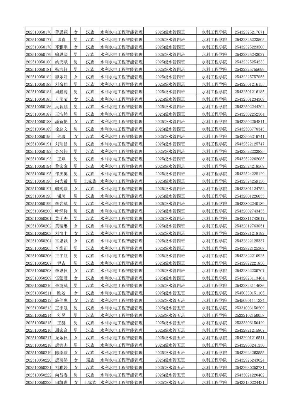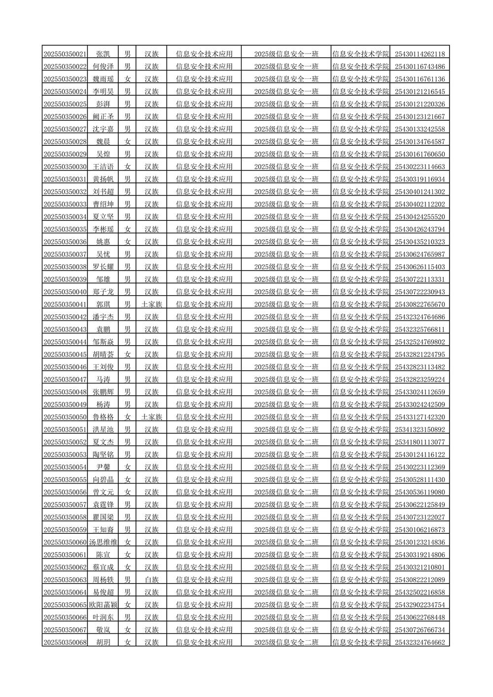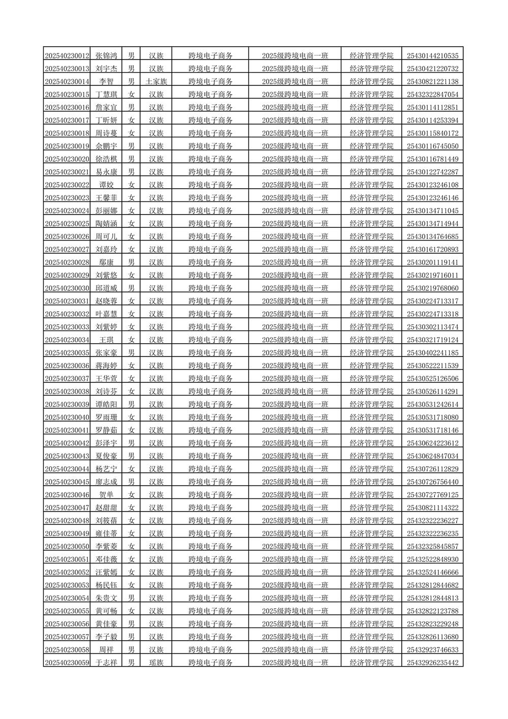 2025年新生分班名单