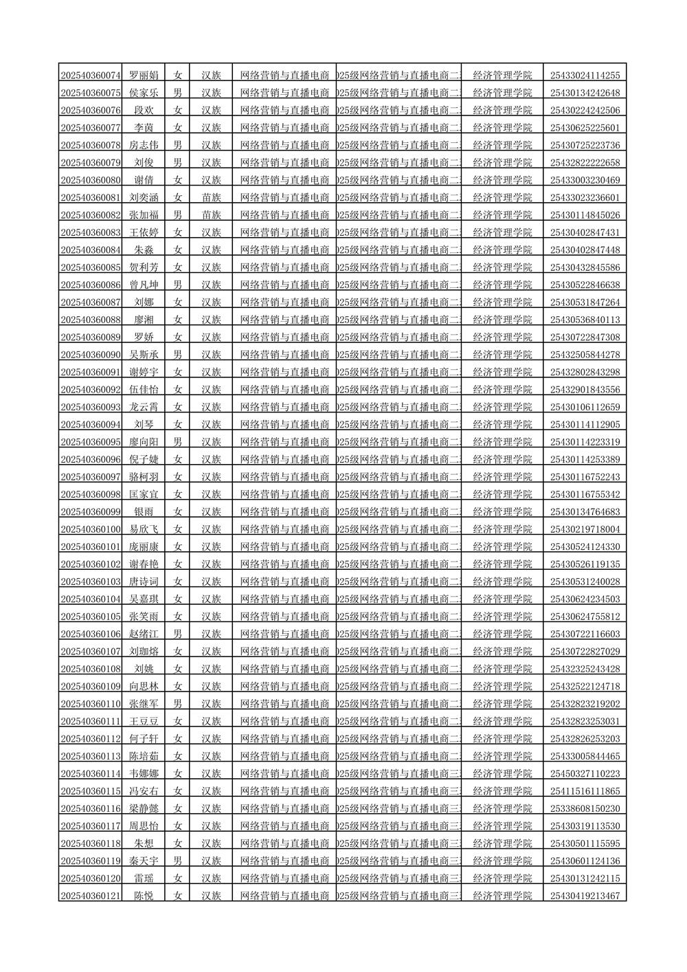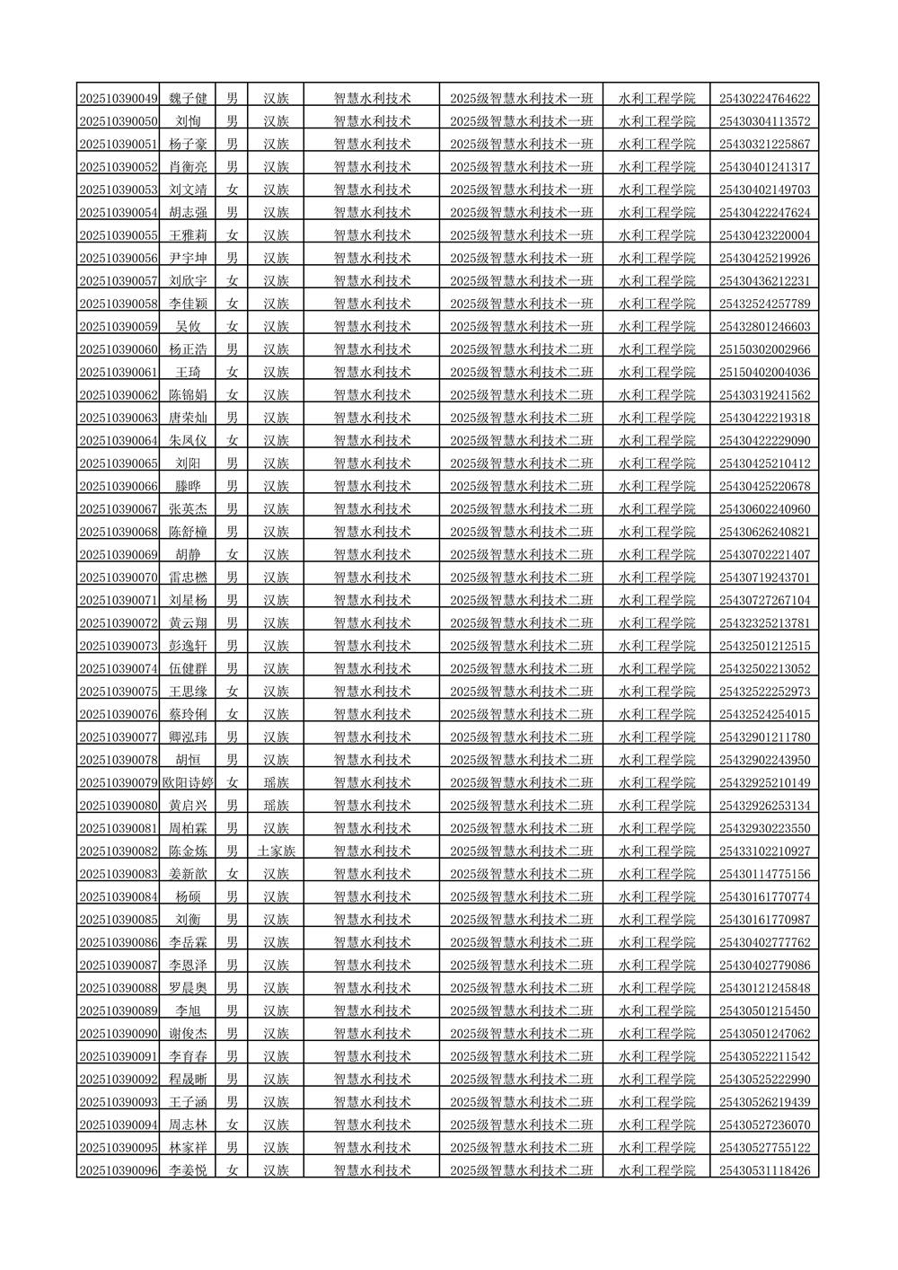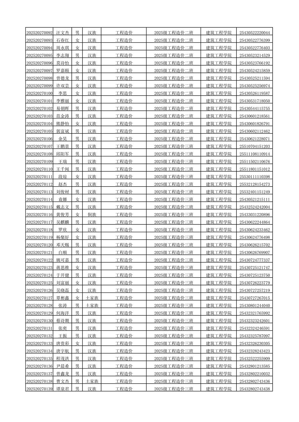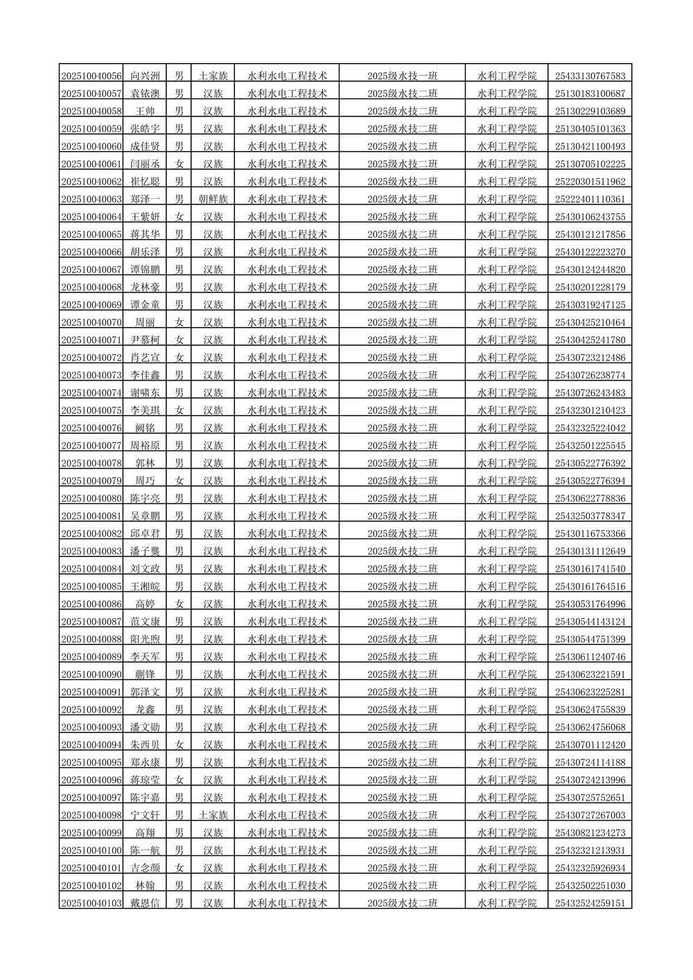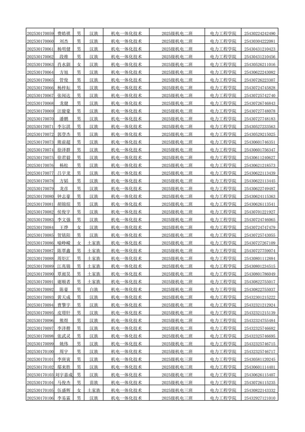 2025年新生分班名单