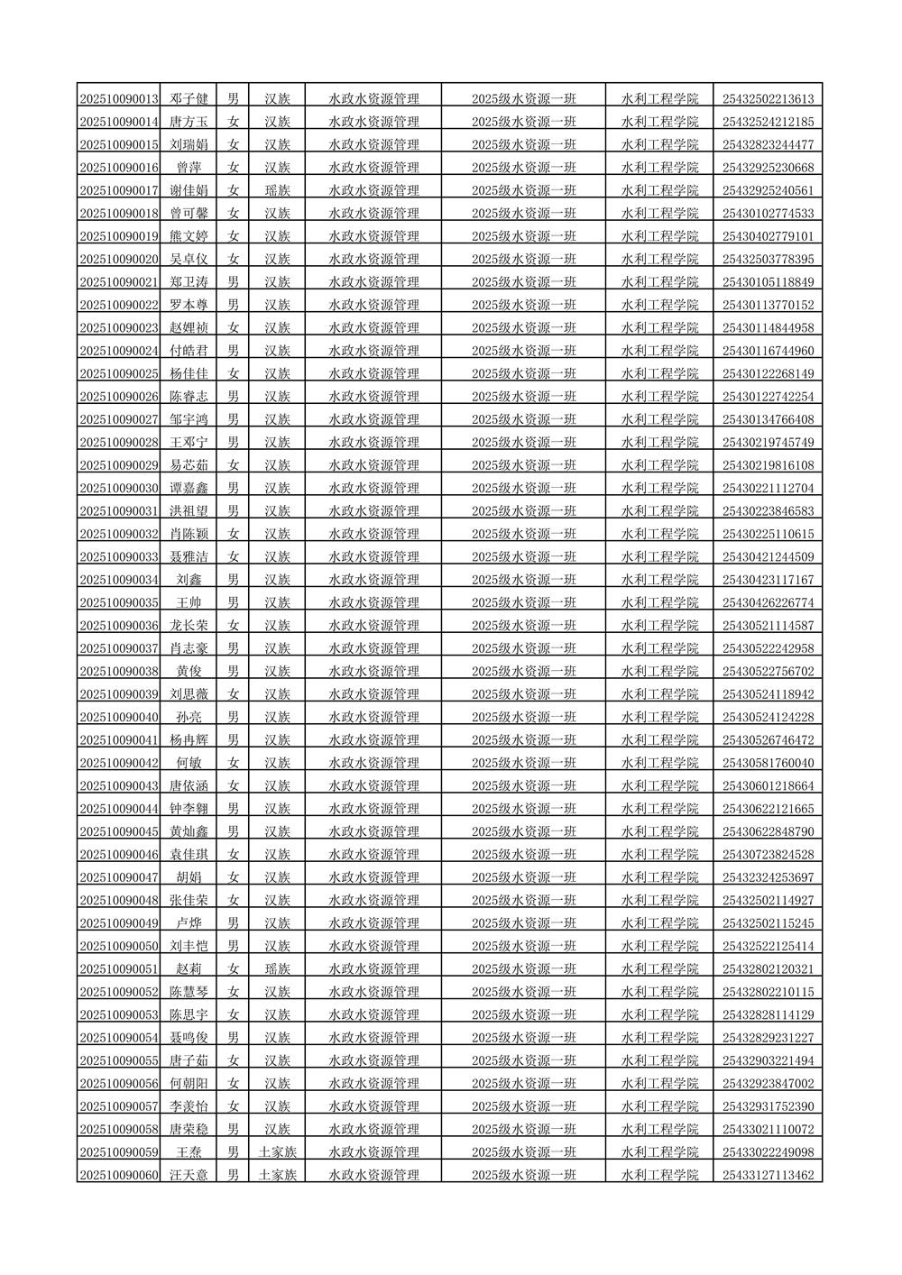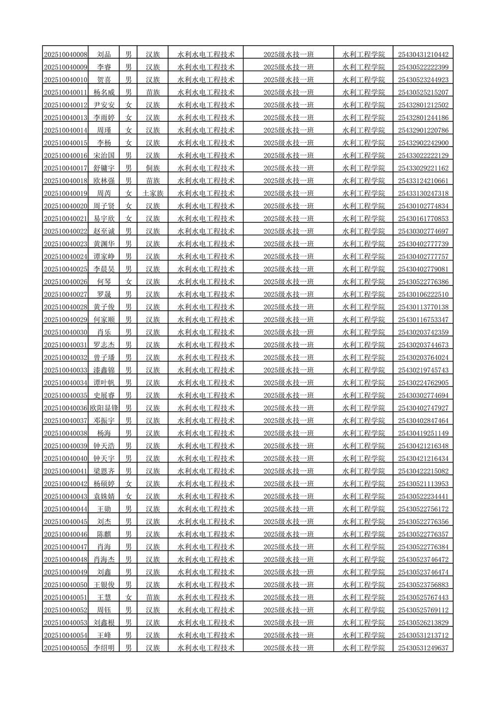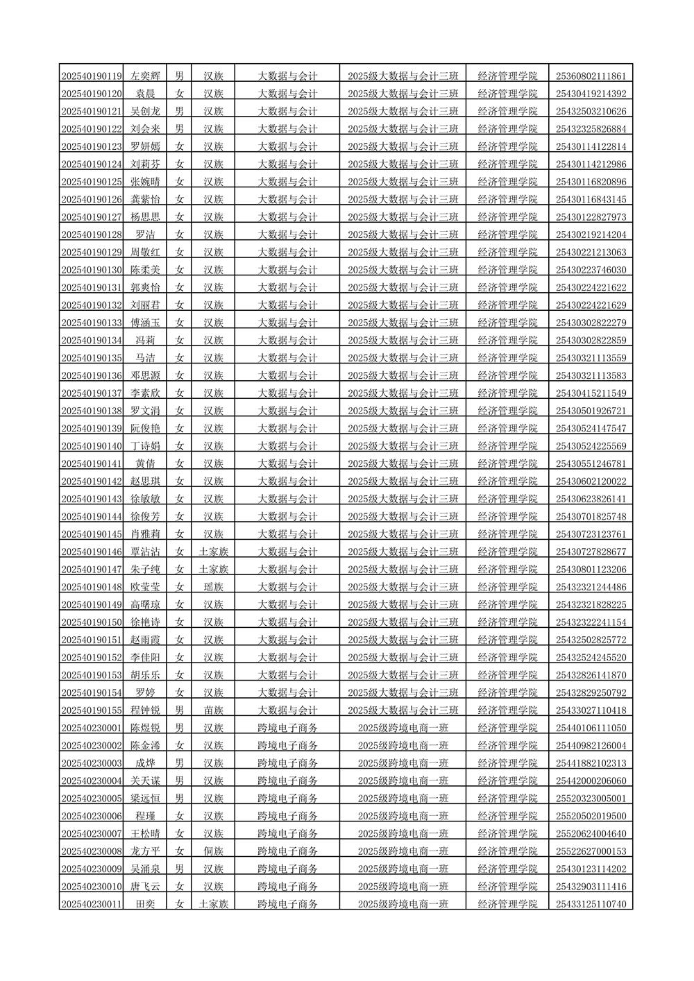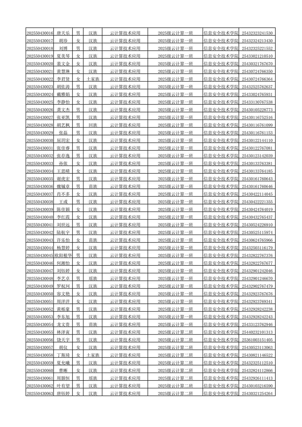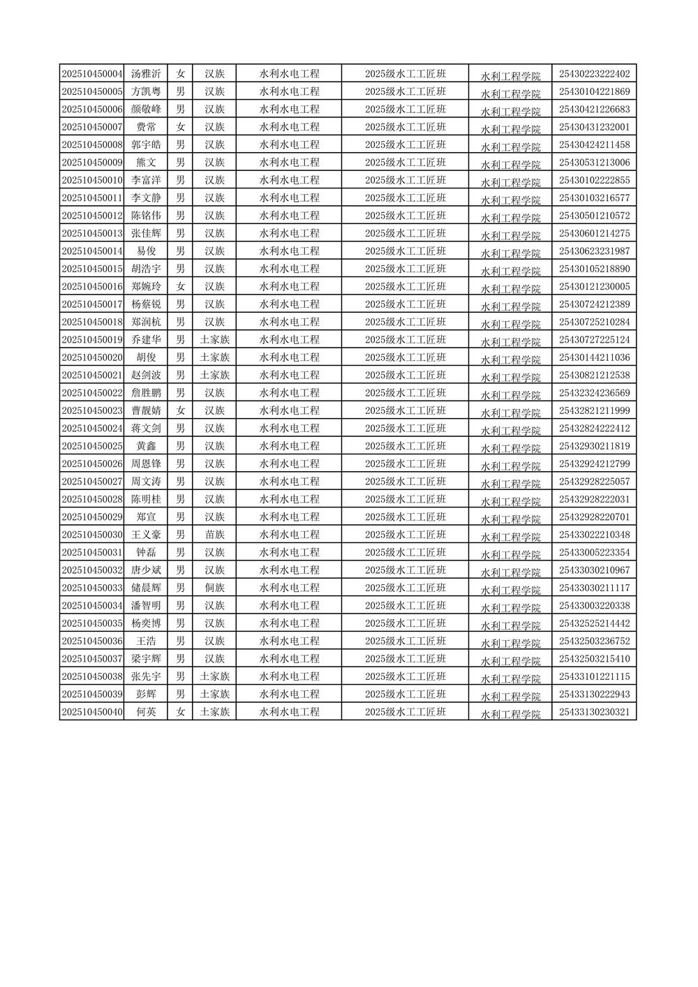 2025年新生分班名单